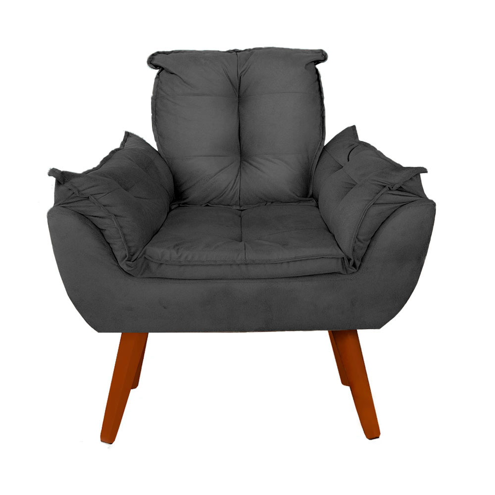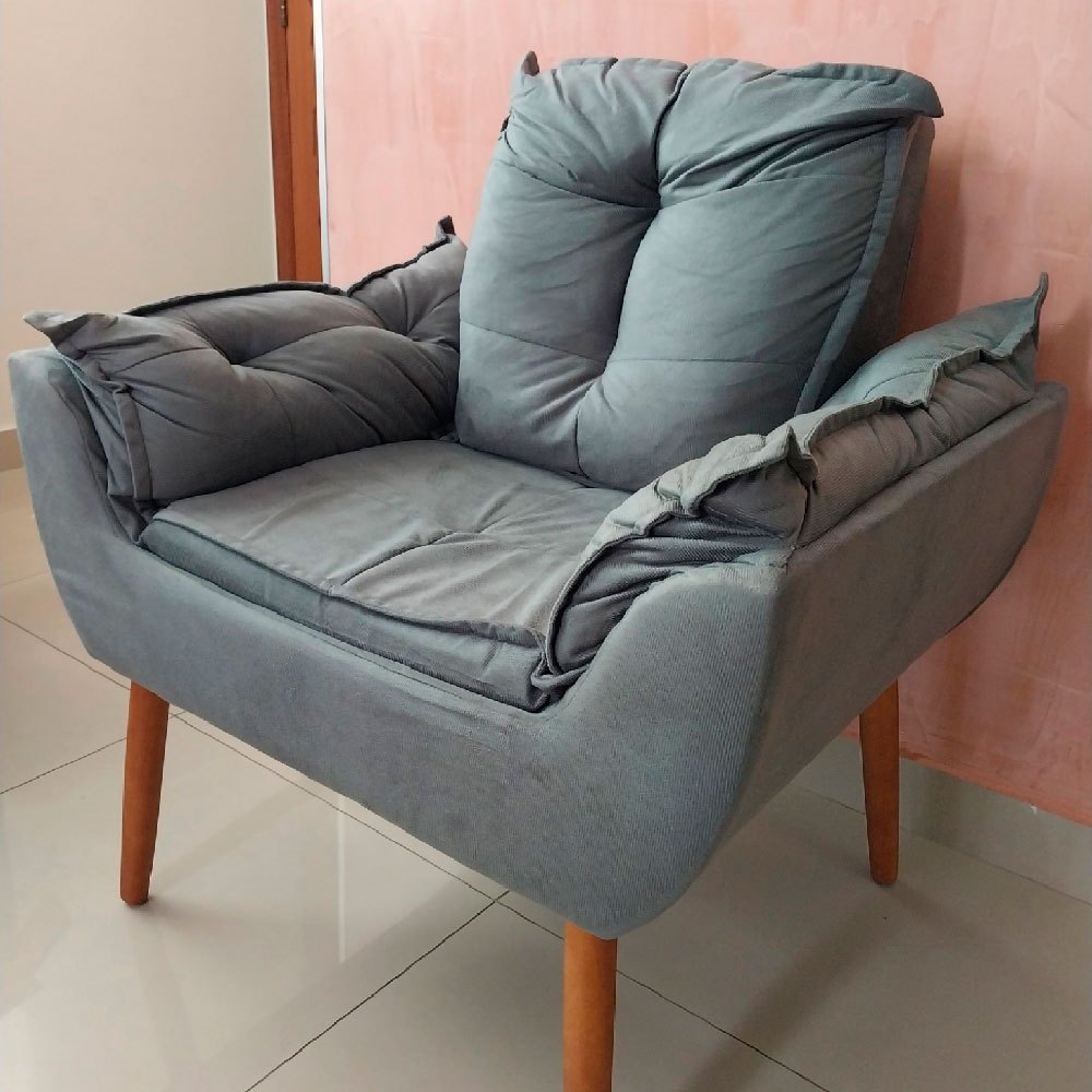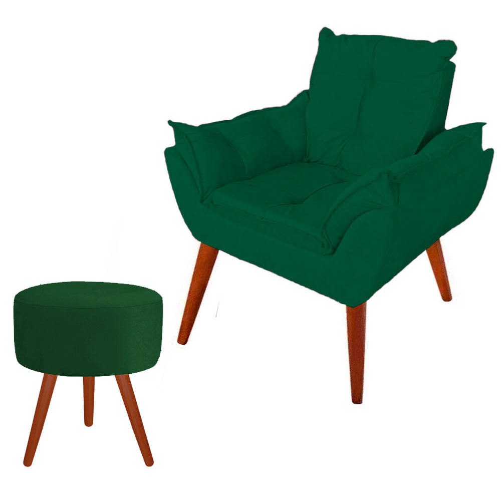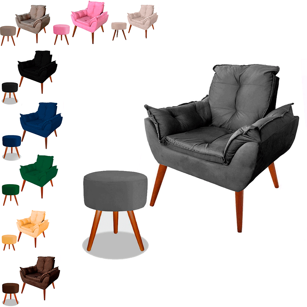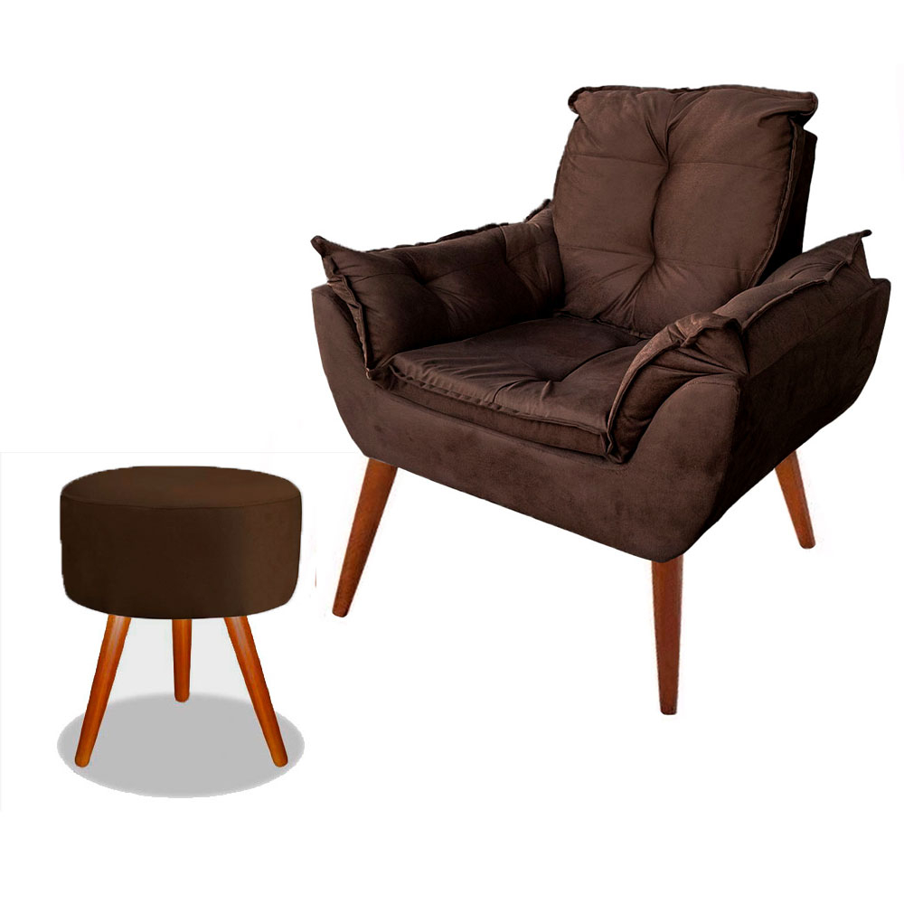 Poltrona Opala Decorativa Pés Palito Com Puff Pés Palito