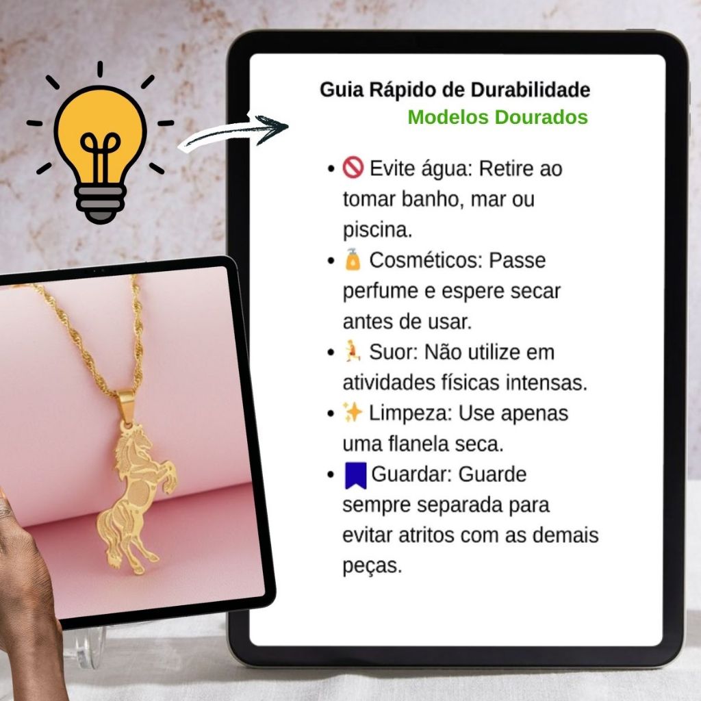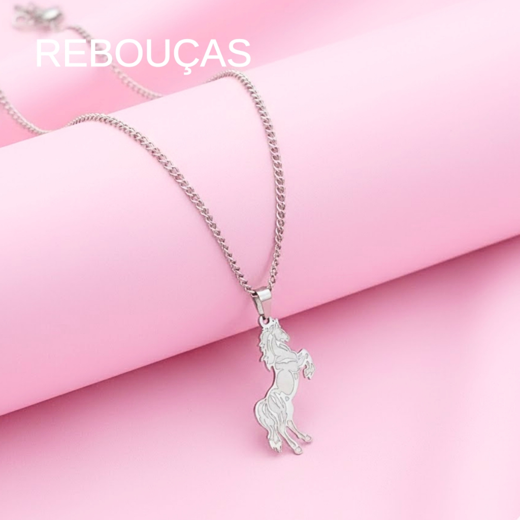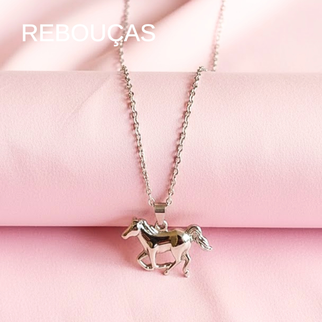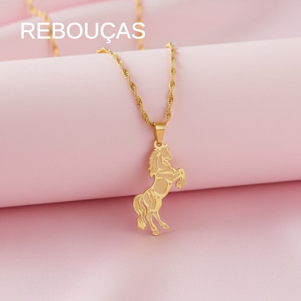 Colar Feminino Pingente Cavalo Rodeio Sertanejo Sertão Dourado