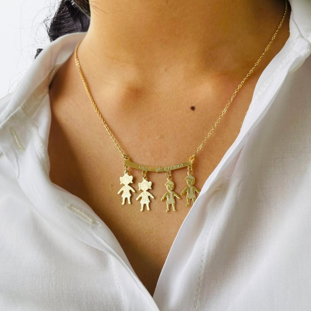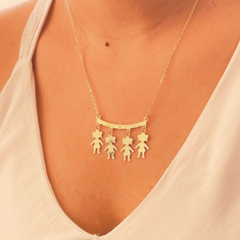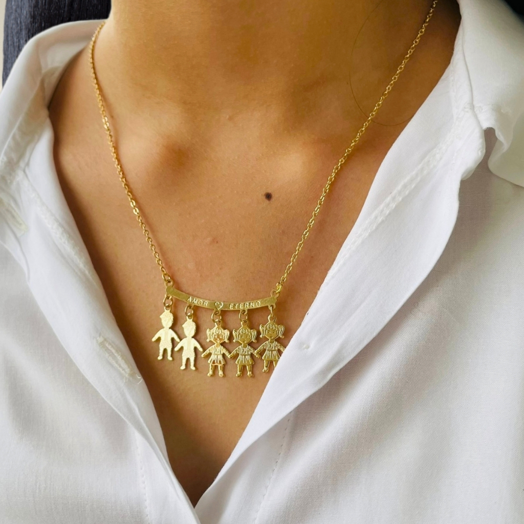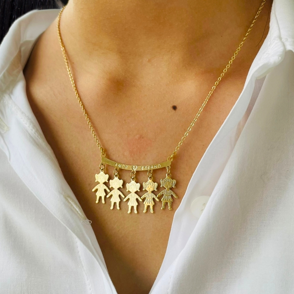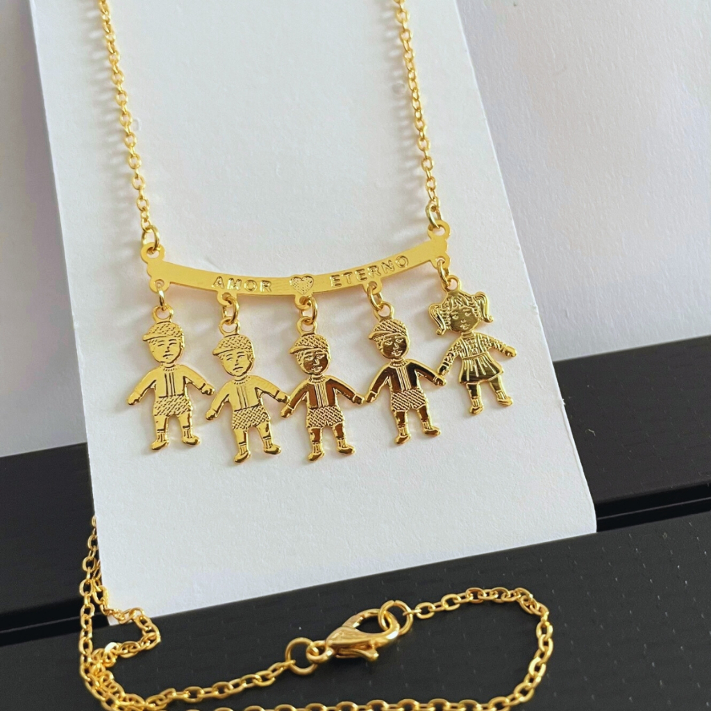 Colar 4 Quatro Meninos 1 Uma Menina Folheado A Ouro Para Adulto Mulher