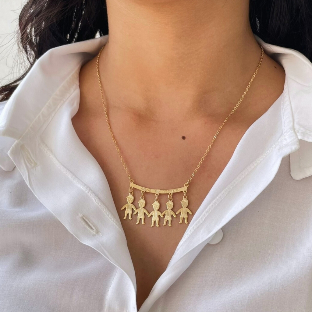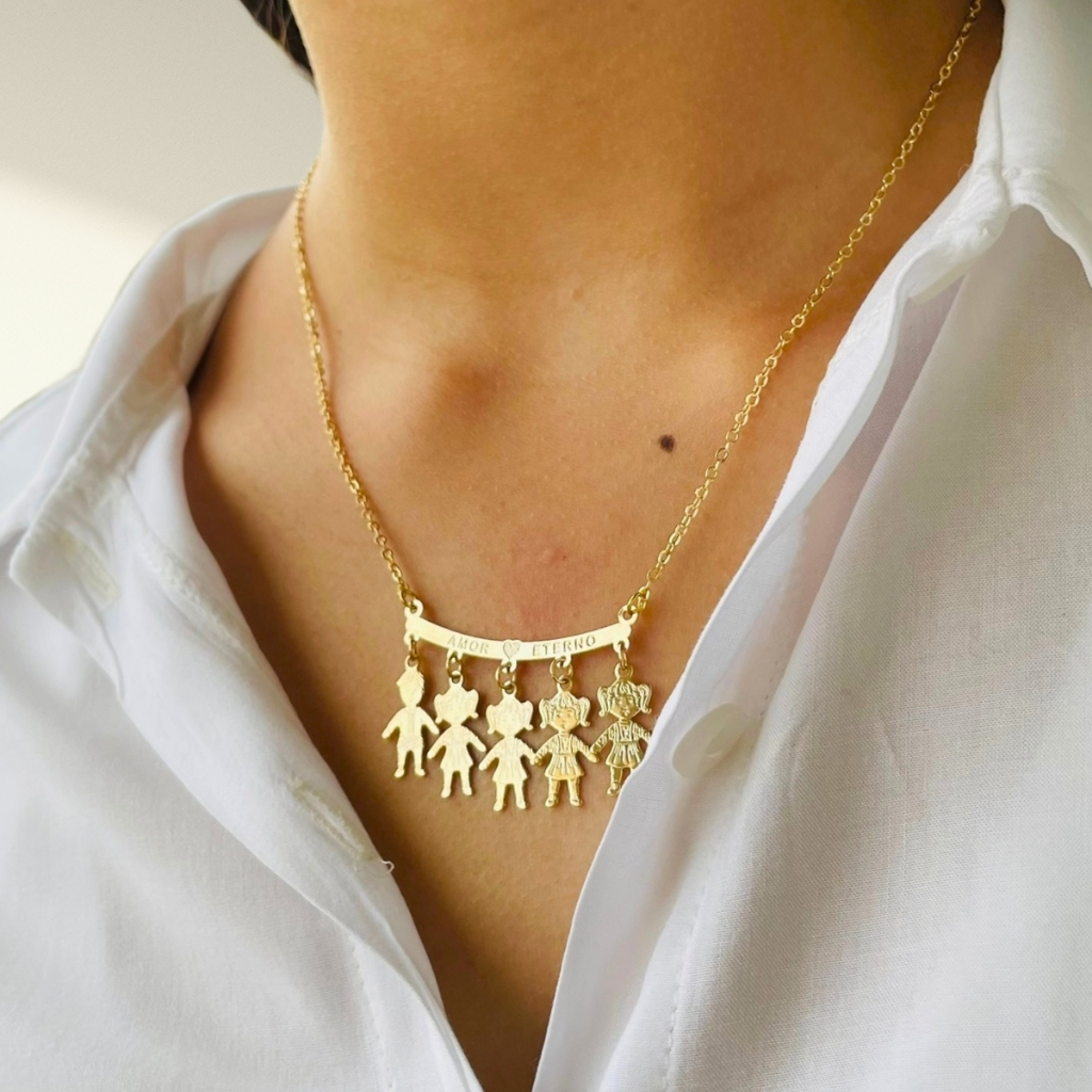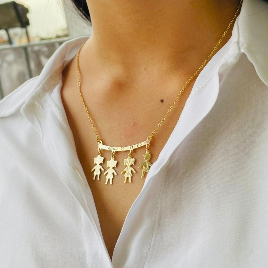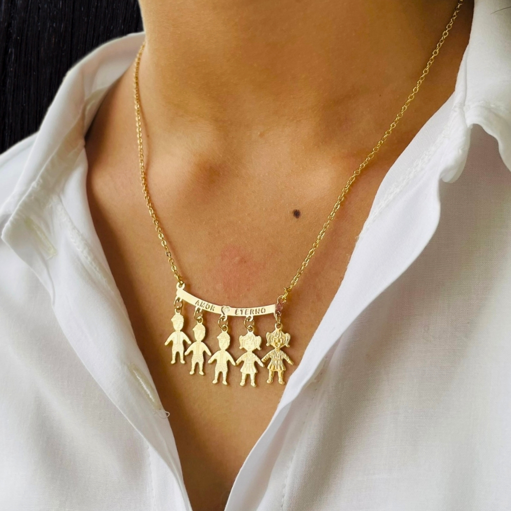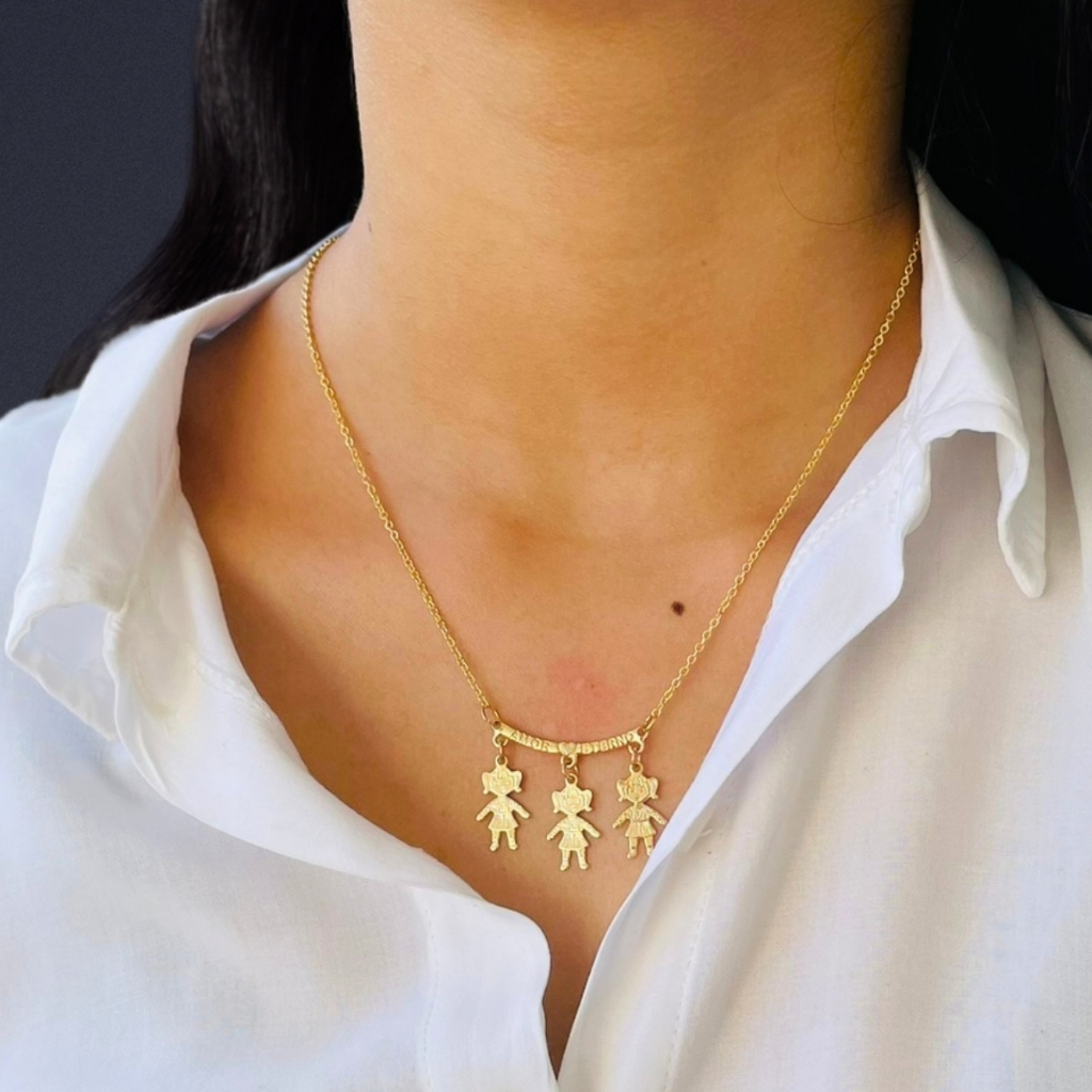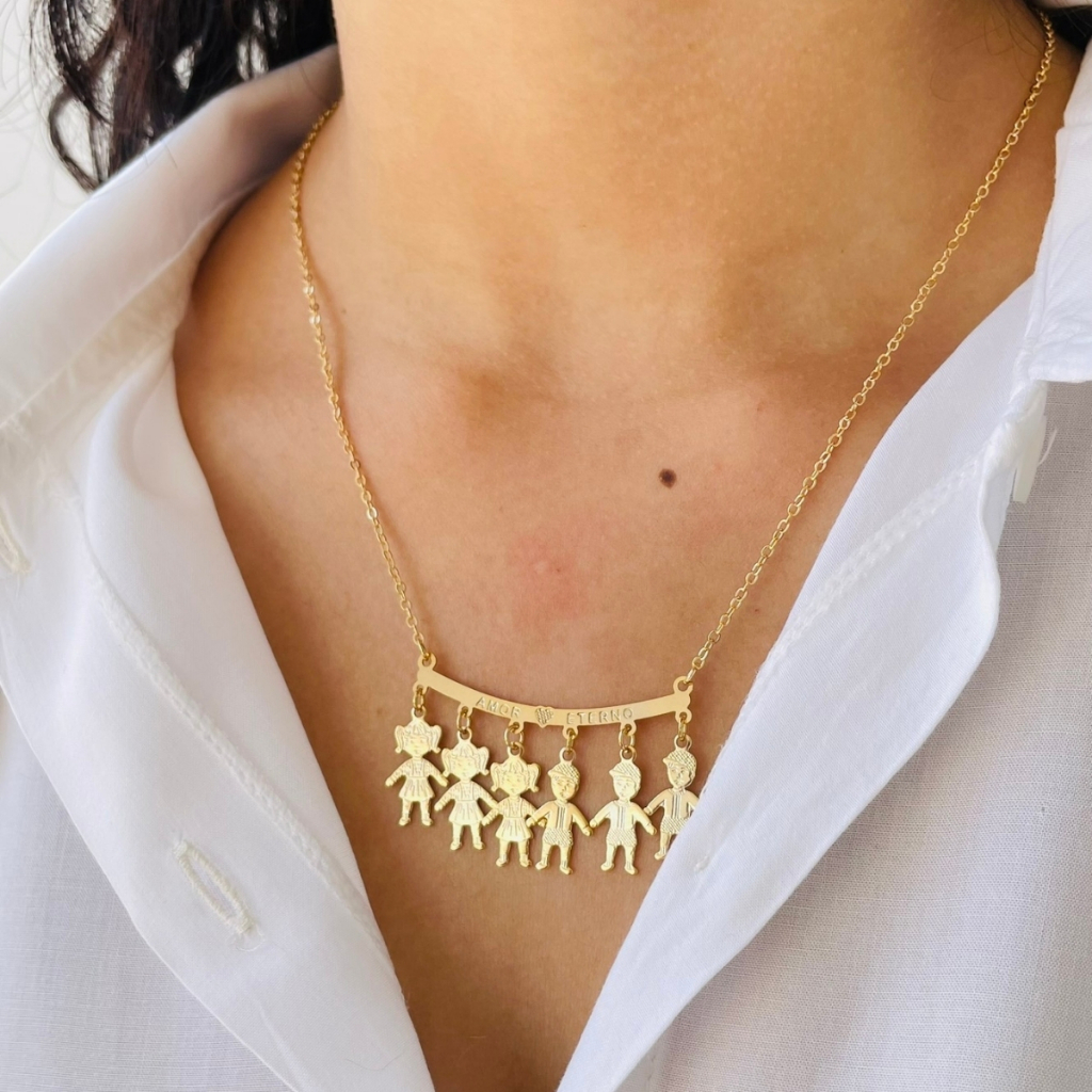 Colar 4 Quatro Meninos 1 Uma Menina Folheado A Ouro Para Adulto Mulher