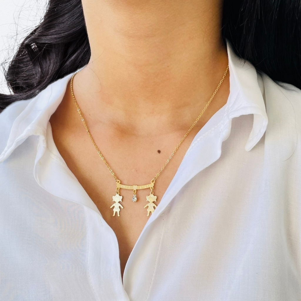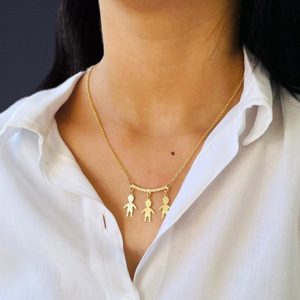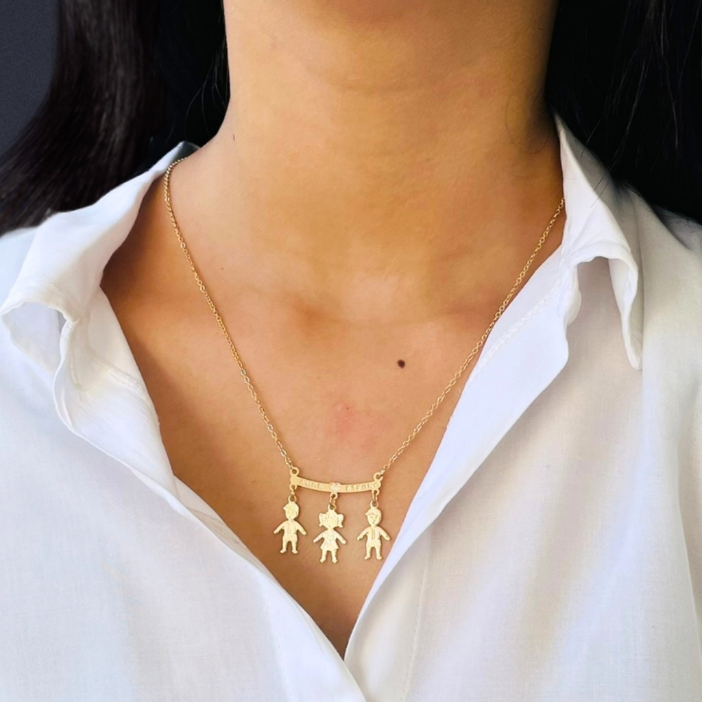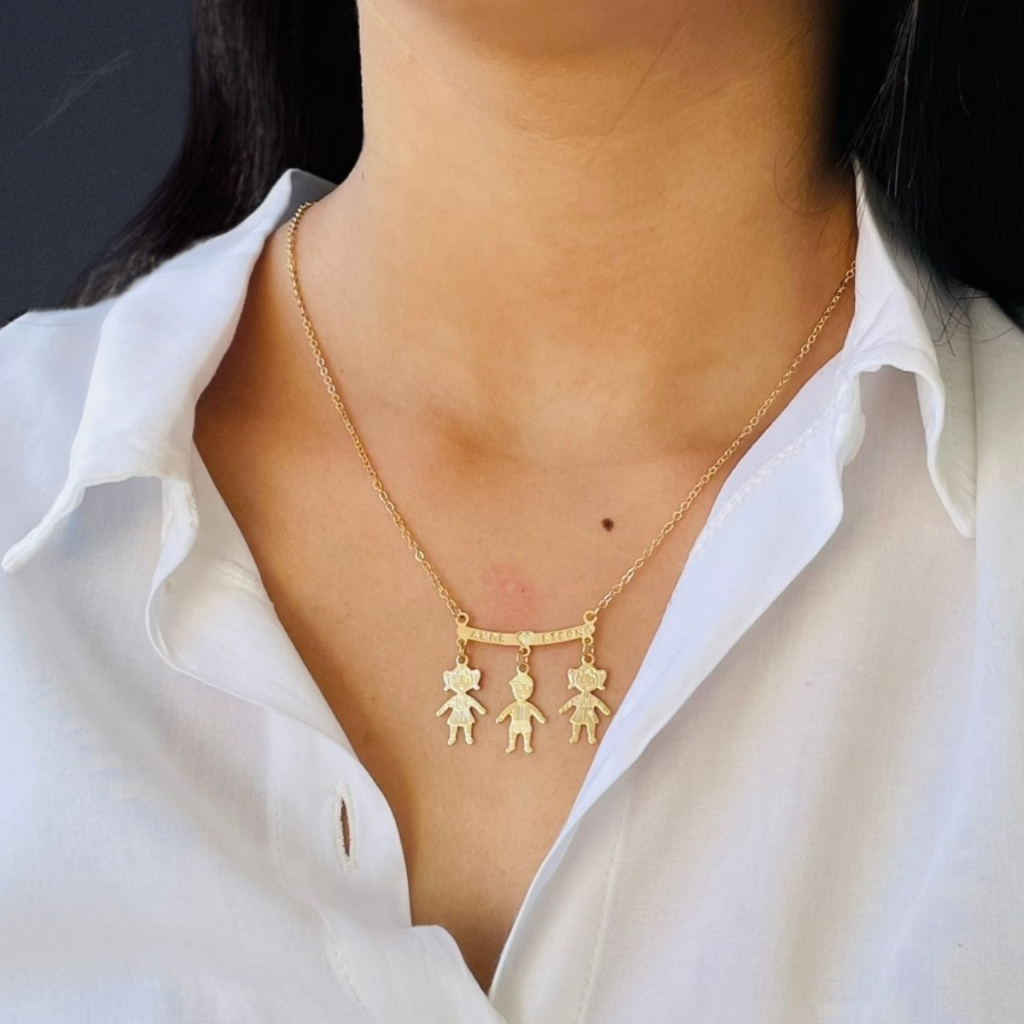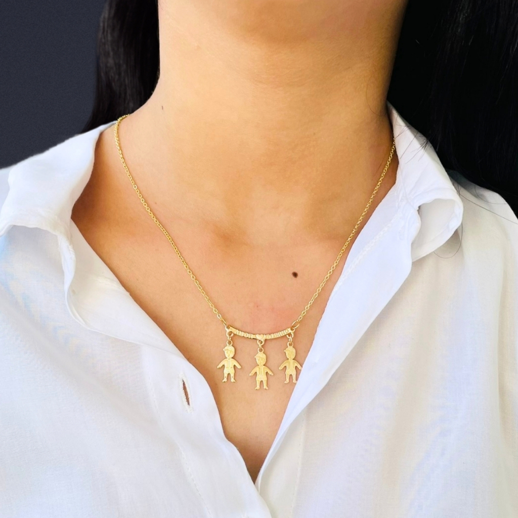 Colar 4 Quatro Meninos 1 Uma Menina Folheado A Ouro Para Adulto Mulher
