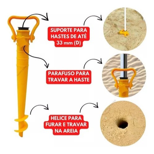 Saca Areia Furador Suporte Guarda-sol Praia Verão Camping