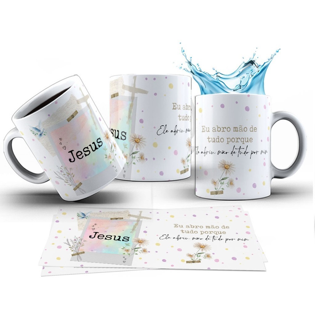 Caneca 325ml Jesus Eu amo Mão de tudo porque ele abriu mão