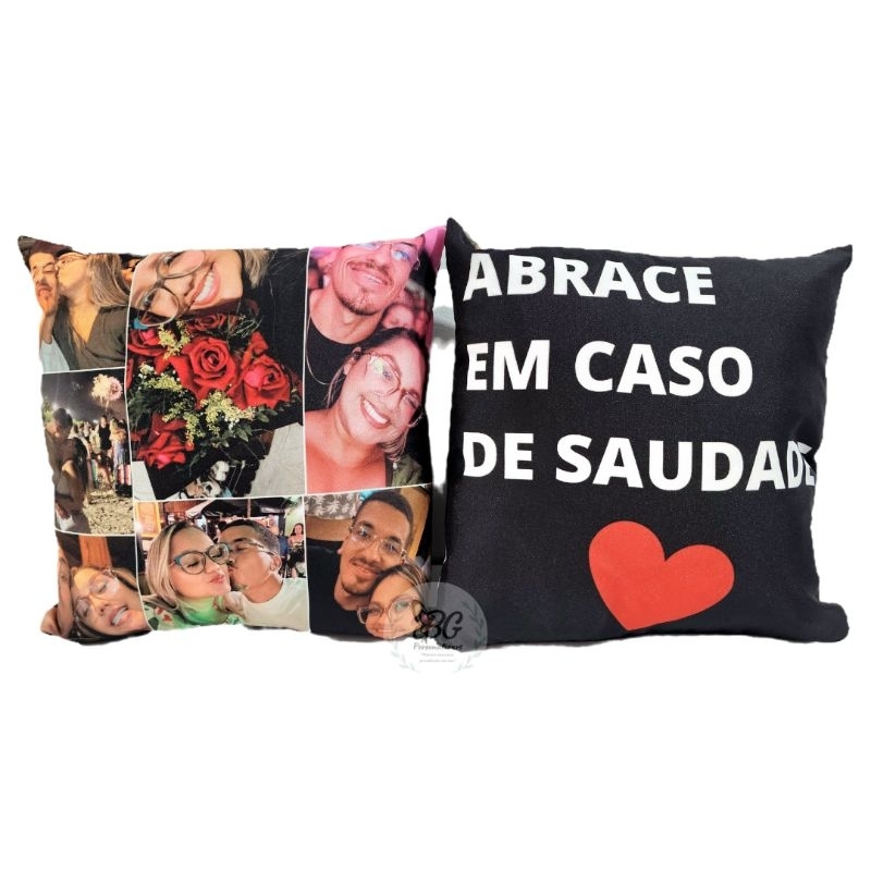 Almofada 40x40 personalizada com fotos abrace em caso de saudade