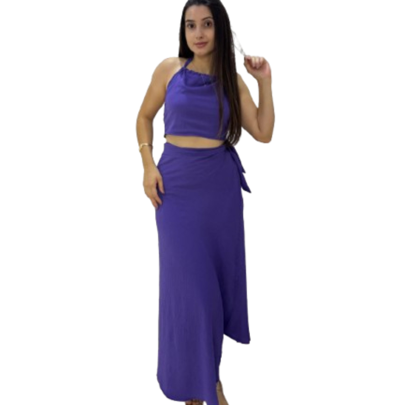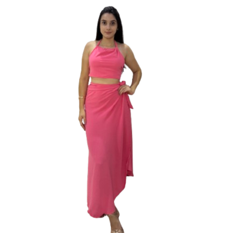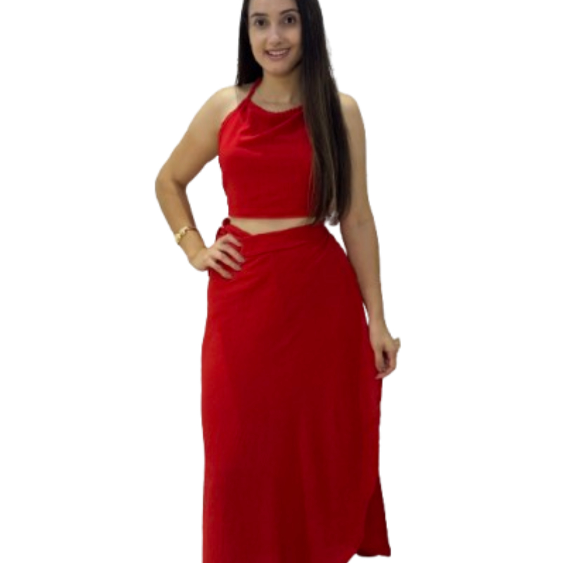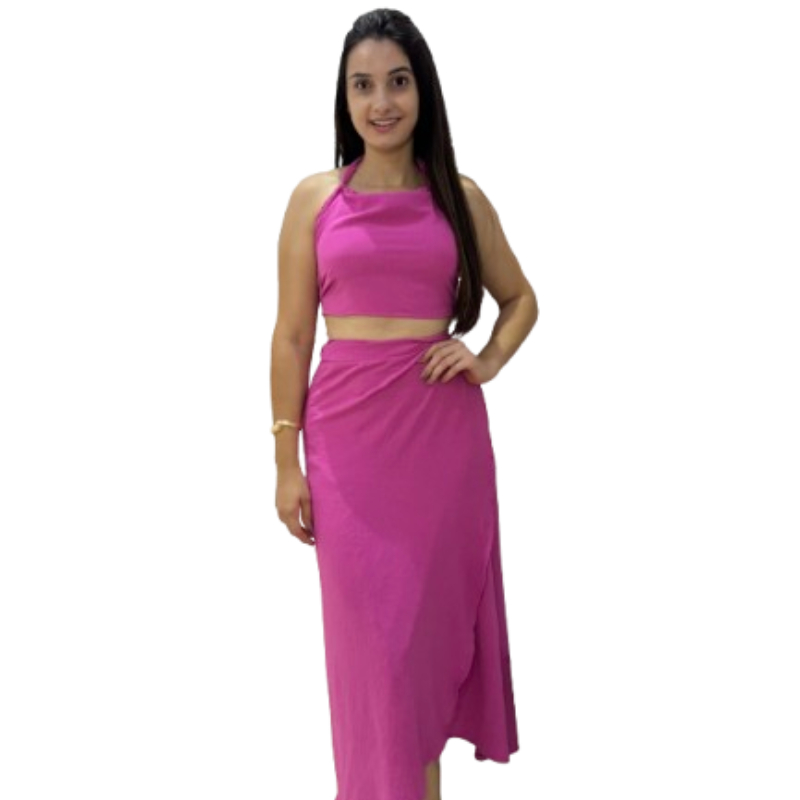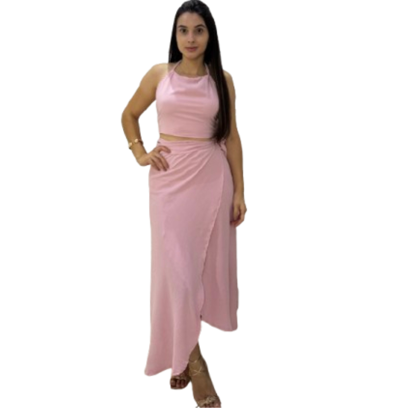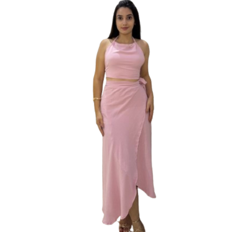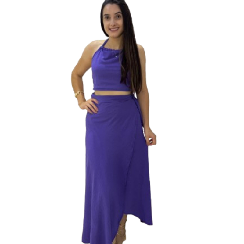 conjunto feminino saia envelope transpassada Cropped frente Única longo transpasse