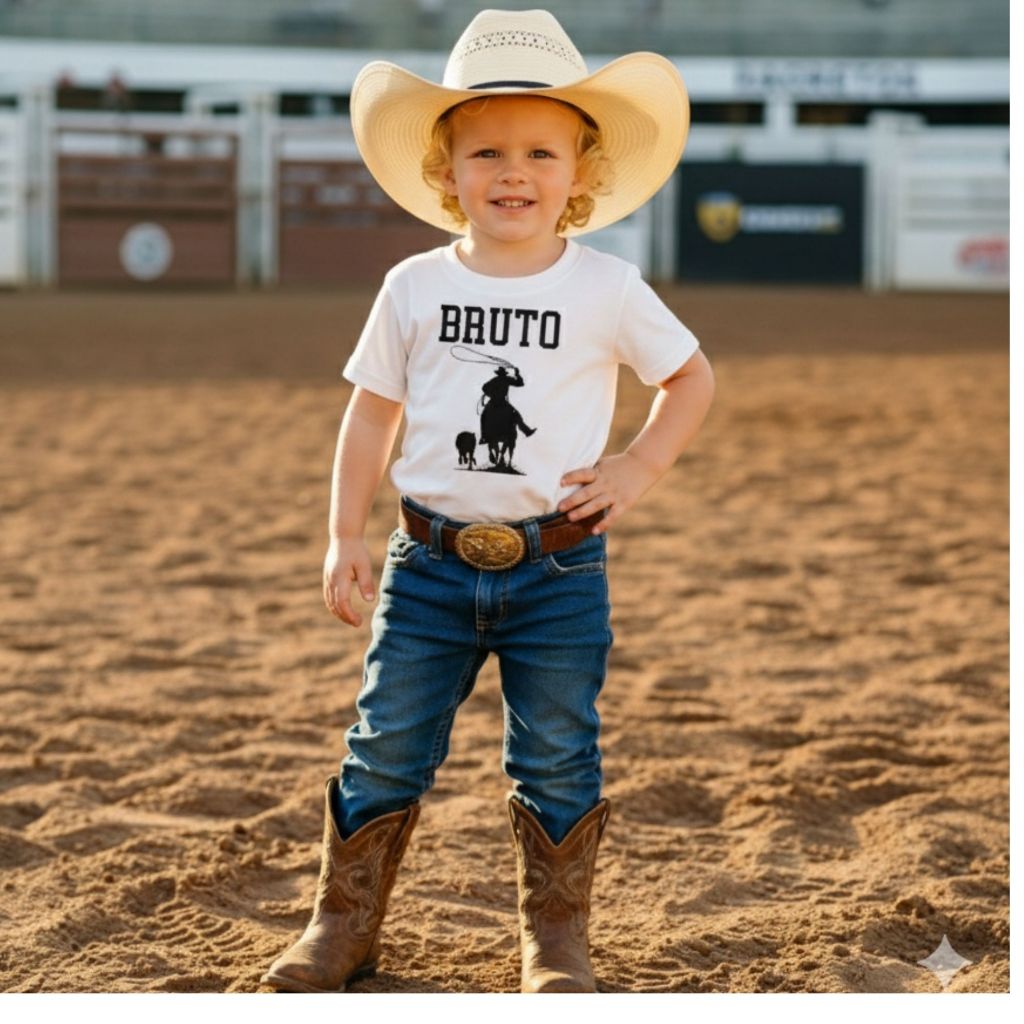 Camiseta Infantil Country Masculina e Feminina TX Farm Boiadeira Bruta e Bruto Rodeio Festa Do Peão