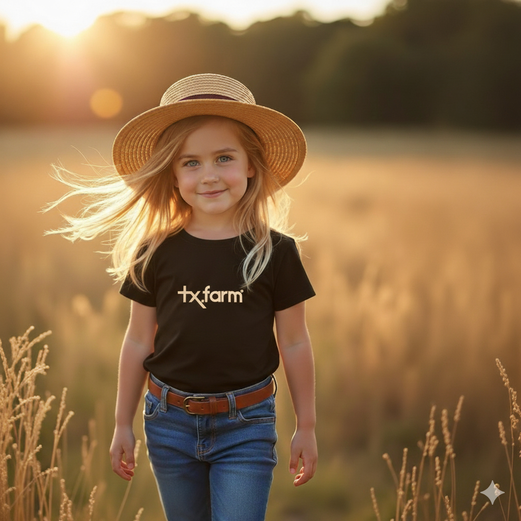 Camiseta Infantil Menina Country Tx Farm Cowgirl 100% Algodão Estampada Confortável Rodeio