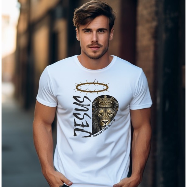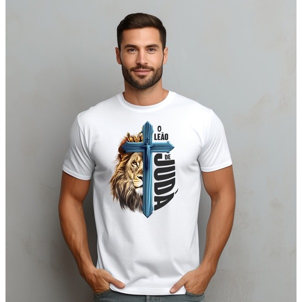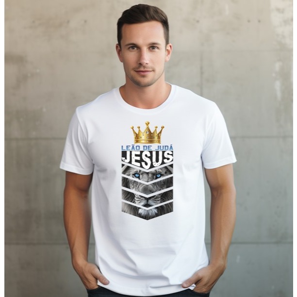 Camiseta Camisa Masculina Gospel Cristã Evangélica Yeshua Promoção 100% Algodão Leão de Judá