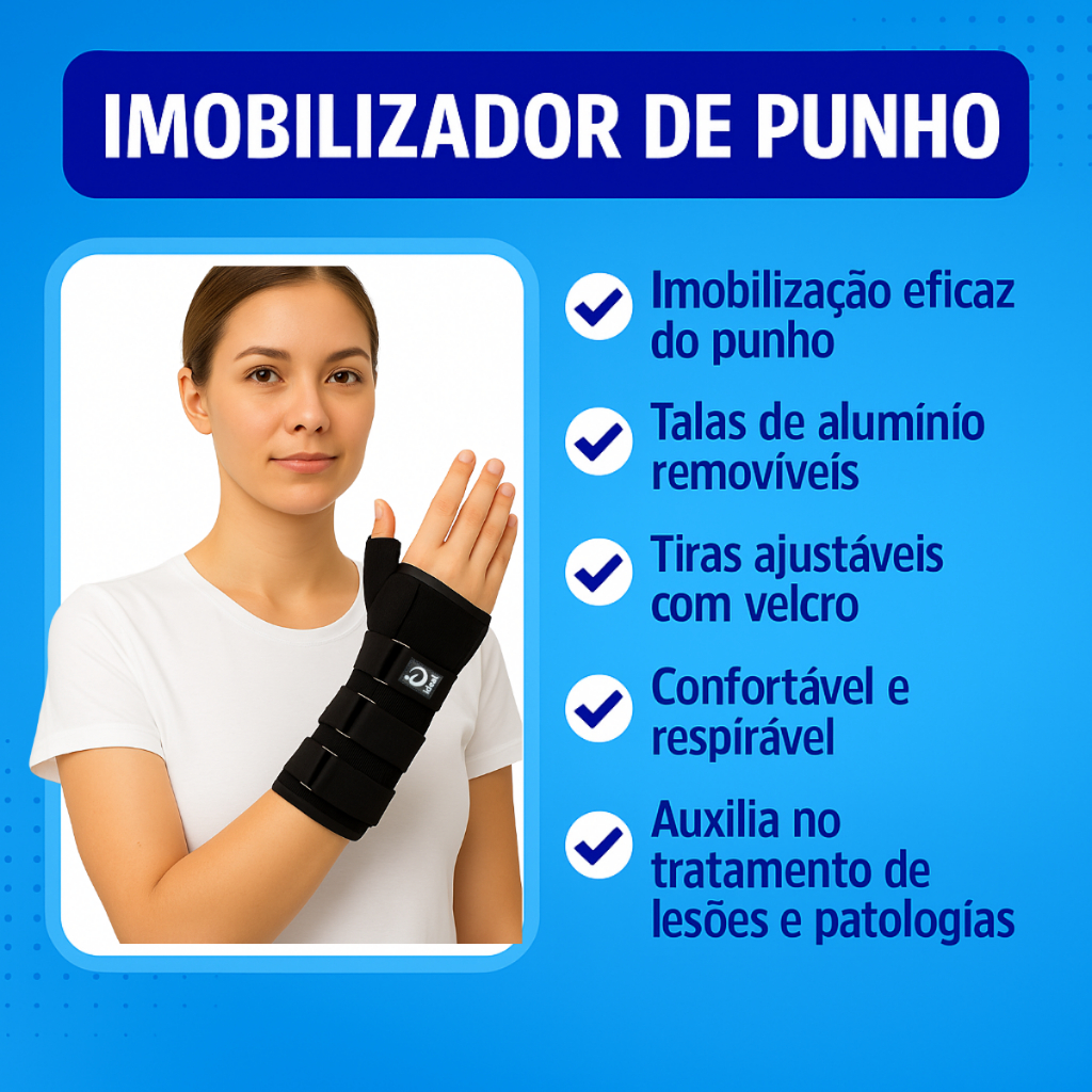 Munhequeira Órtese Tala Imobilizadora Punho Pulso E Polegar - Cor Preto - Lado Esquerdo ou Direito
