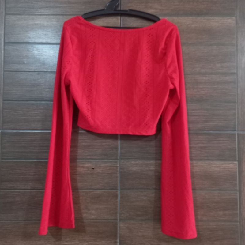 Cropped vermelho de manga comprida malha com elastano/ Tam: G