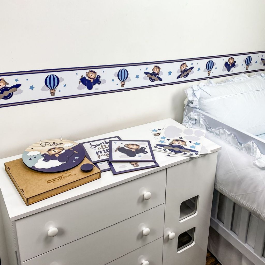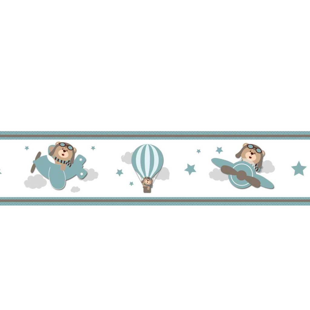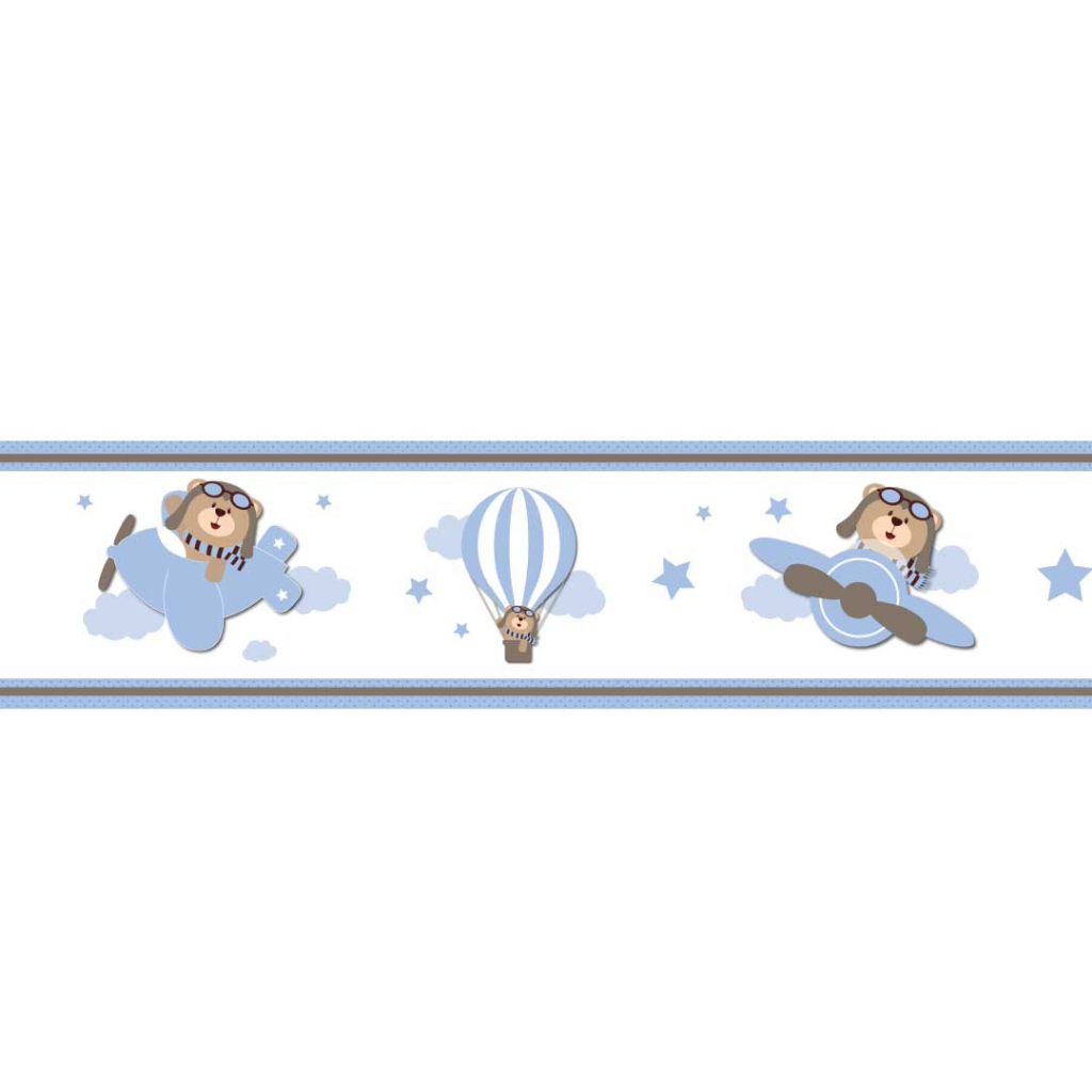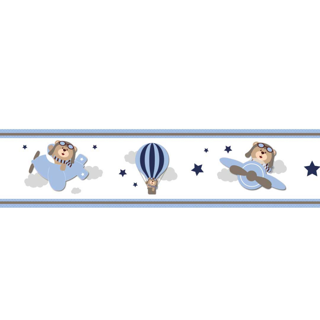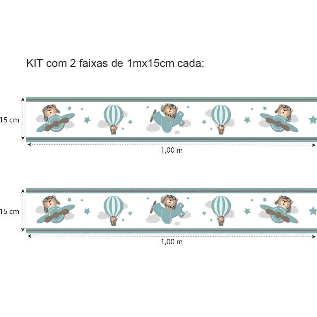 2 Faixas Adesiva Decorativa De Parede Urso Aviador Ursinho Baloeiro Infantil