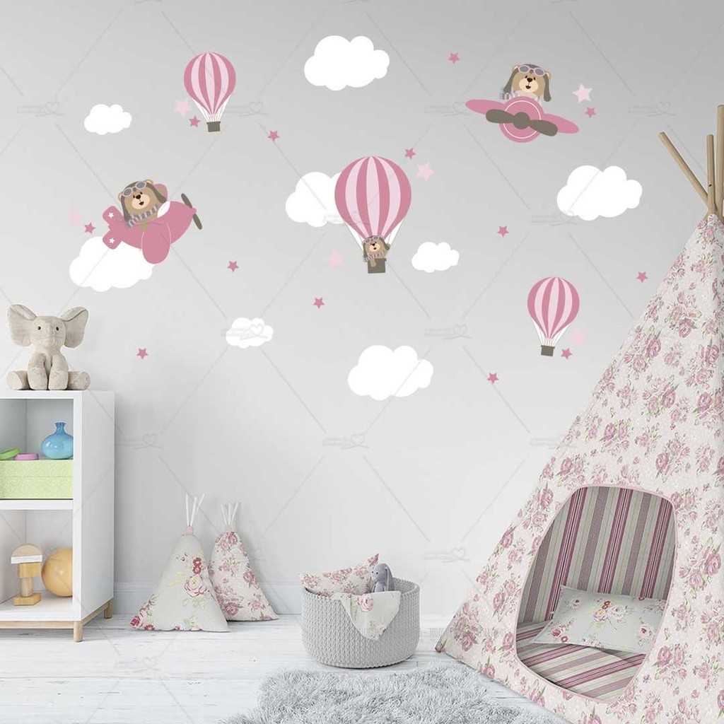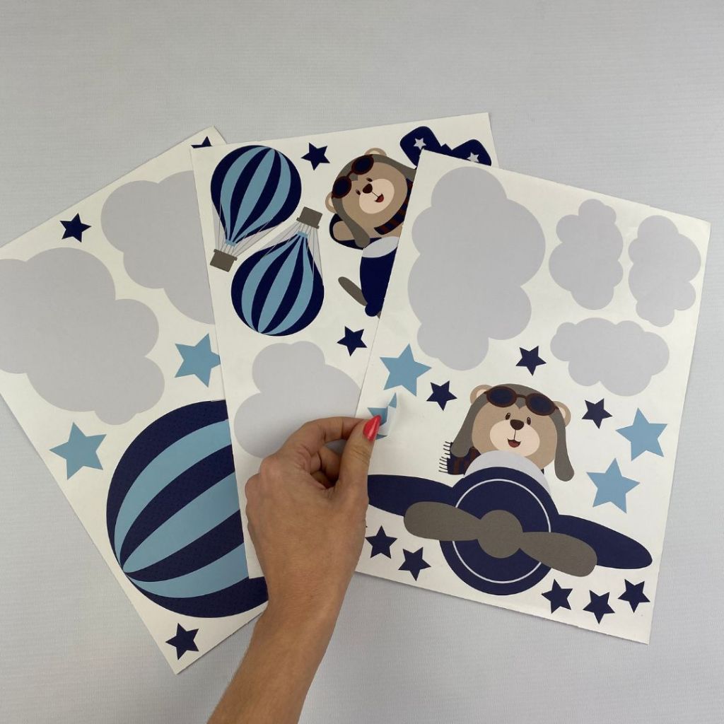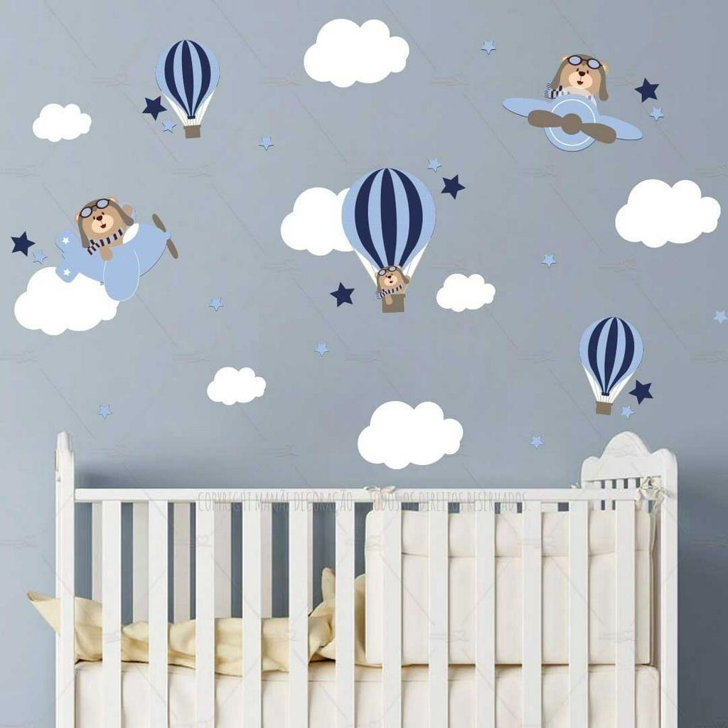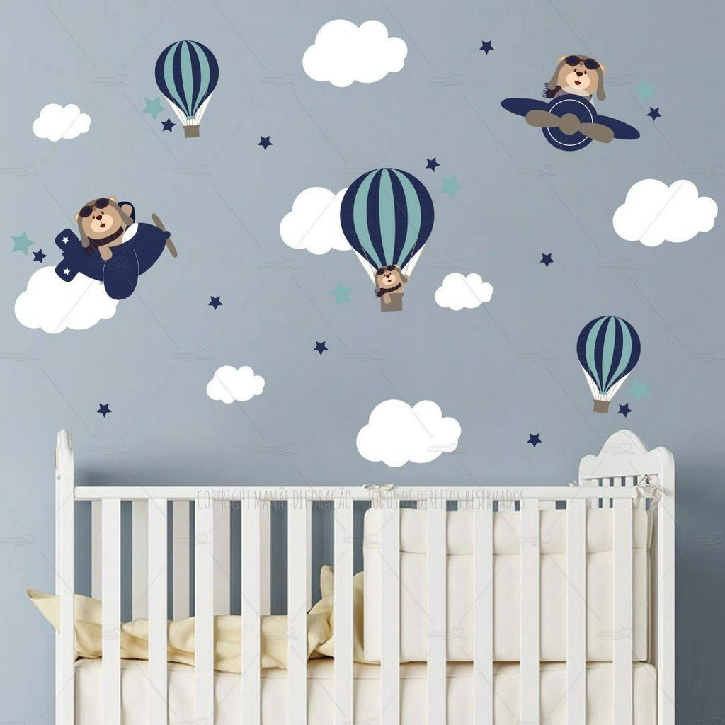 Adesivo De Parede Infantil Balao Nuvens Urso Aviador Xd