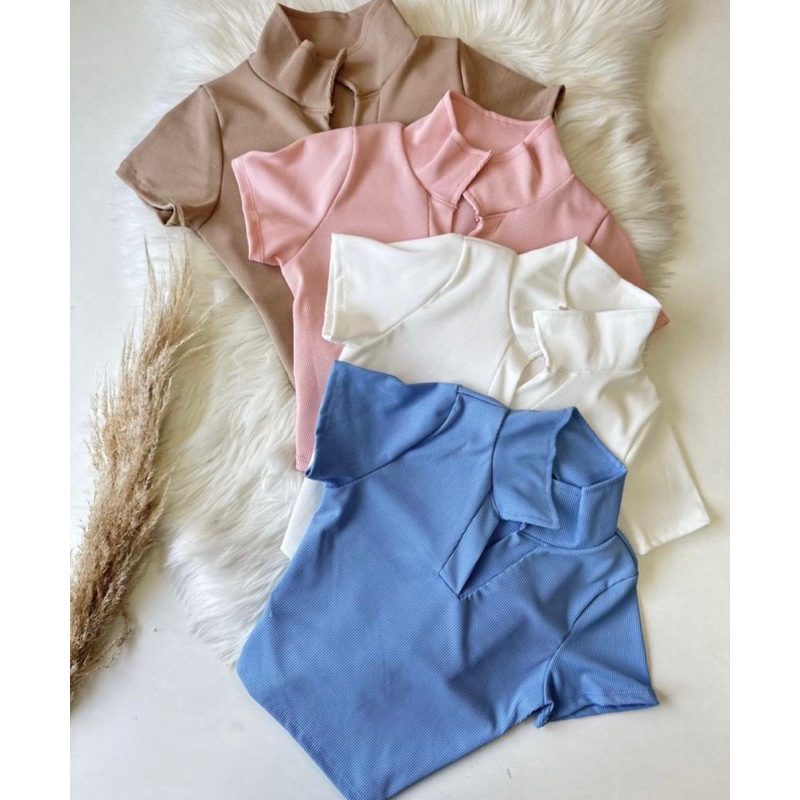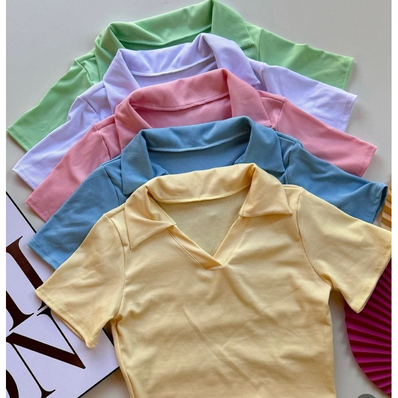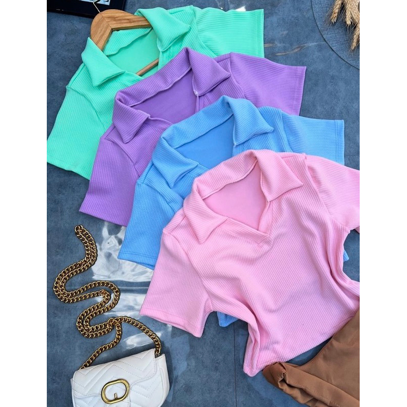 cropped camisetinha polo com gola em ribana feminino moda verão basico