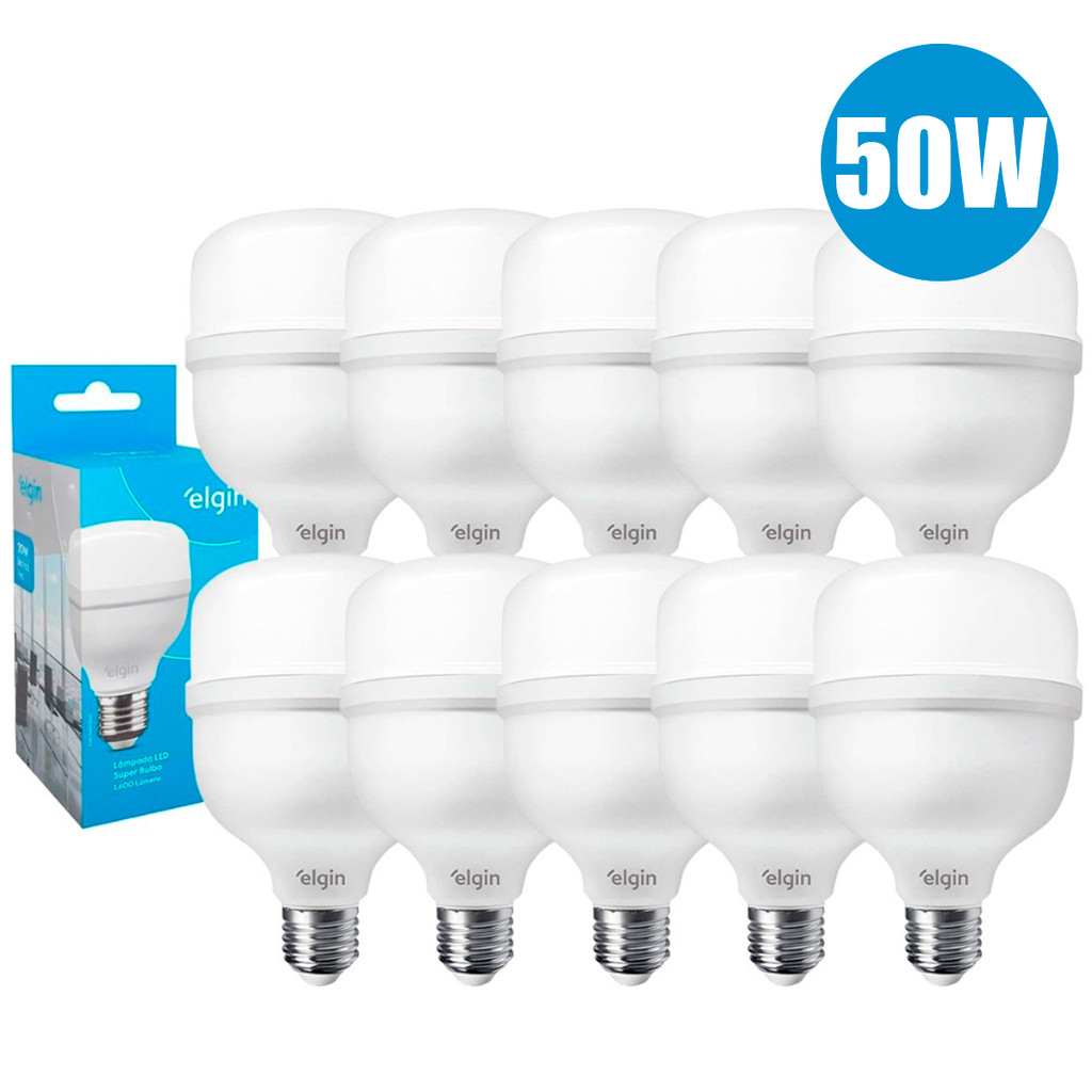 Kit 10 Lâmpadas Led Elgin Bulbo Alta Potência 20w 30w 40w 50w Bivolt 110/220V 6500k Luz Branco Frio