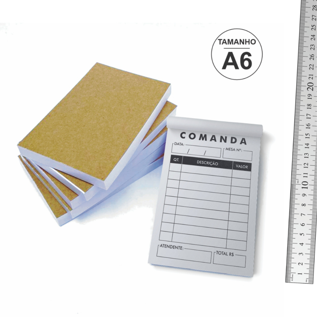 5 Blocos de Comanda c/ 100 Folhas A6 10x14cm Lanchonete, Barzinho, Restaurante, Bar, Adega, Padaria