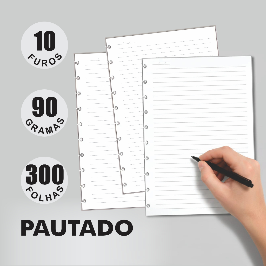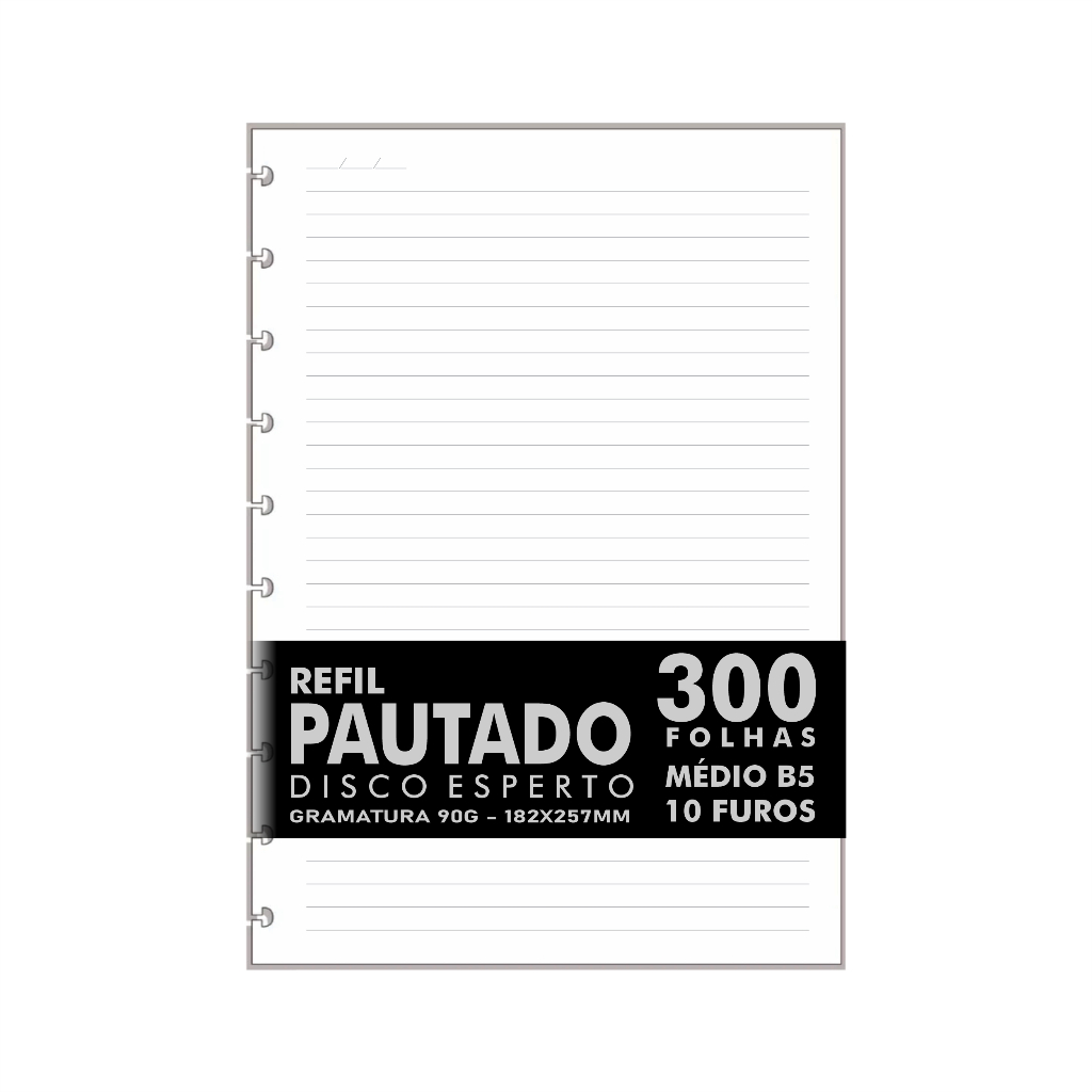 Refil Genérico Pautado Compatível Caderno Discos / Inteligente 300Fls Colegial Médio B5 10 Furos 90g