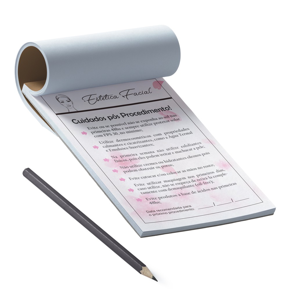 Kit Bloco Ficha De Anamnese + Cuidados Limpeza De Pele / Estética Facial / Esteticista