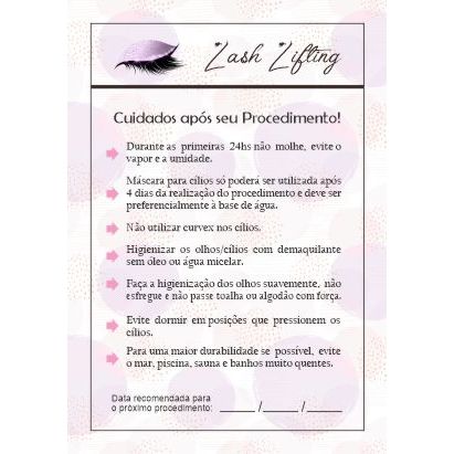 Bloco Cuidados Pós Lash Lifting / Lash Lift / Permanente Cílios