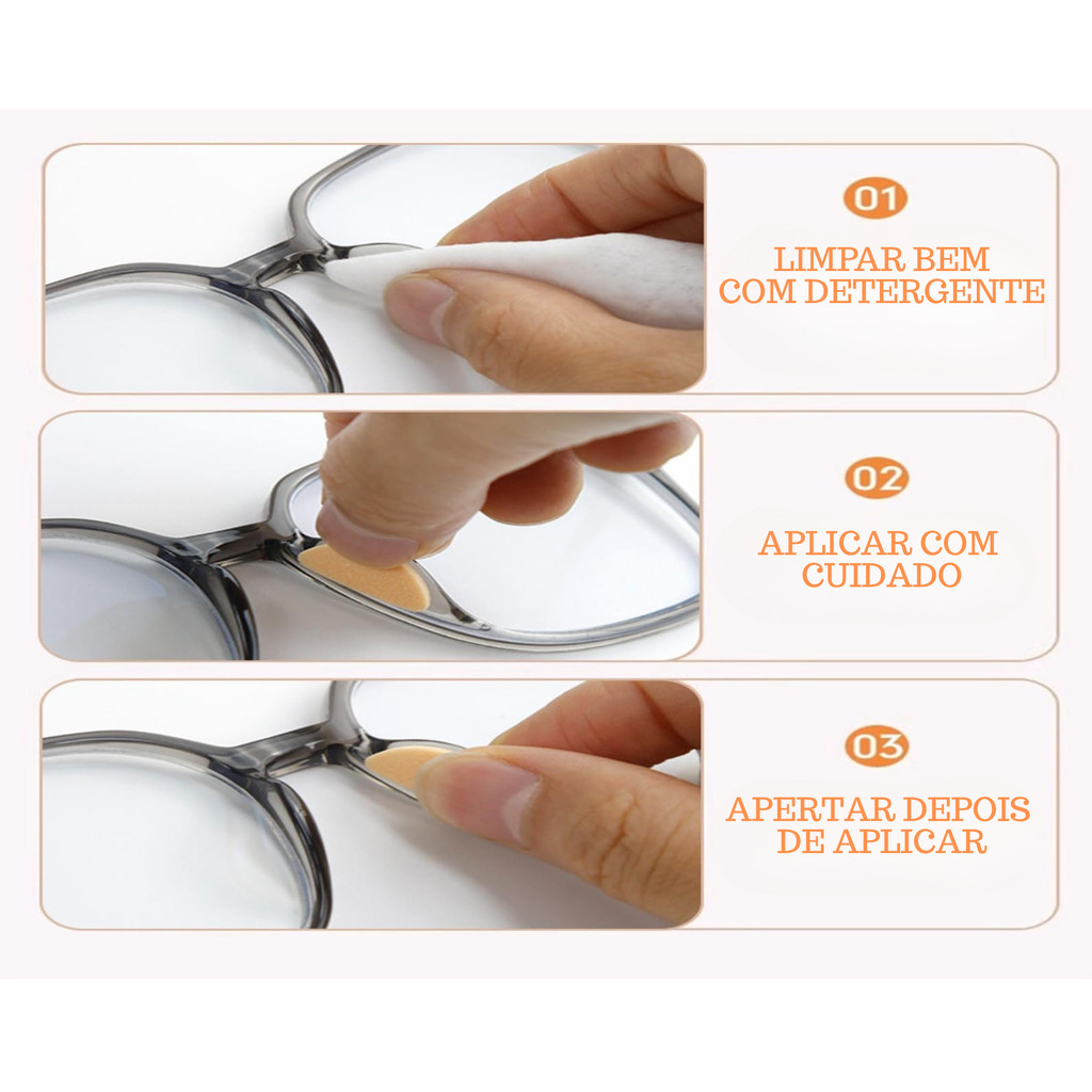 Kit 12 Pares Plaqueta Adesiva para Óculos Antiderrapante Almofada de Nariz
