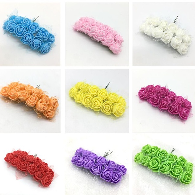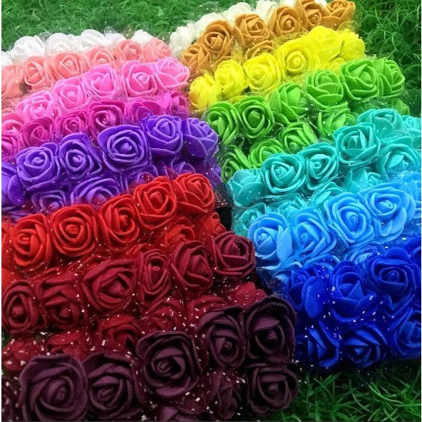 Pacote com 144 Mini Rosas de EVA Rosinhas Artificiais - Diversas Cores