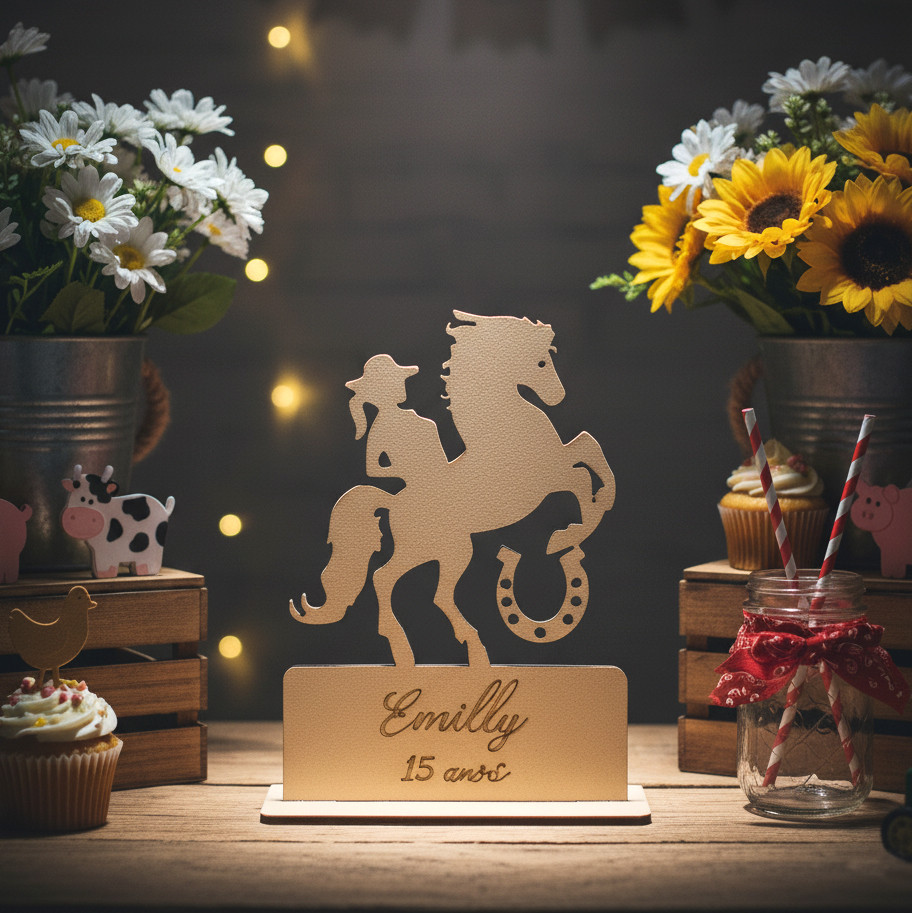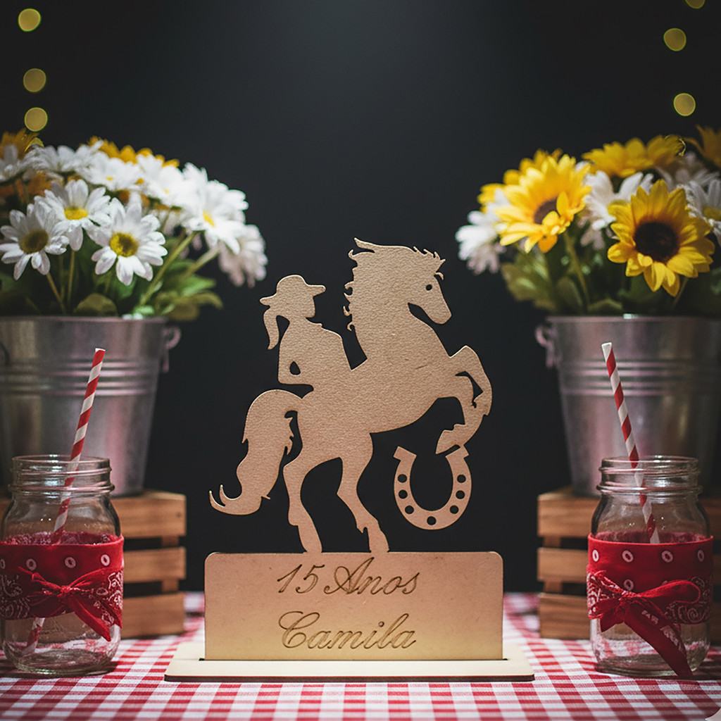 Kit 5 Centro De Mesa Cowgirl Cavalo Country Mdf Gravados
