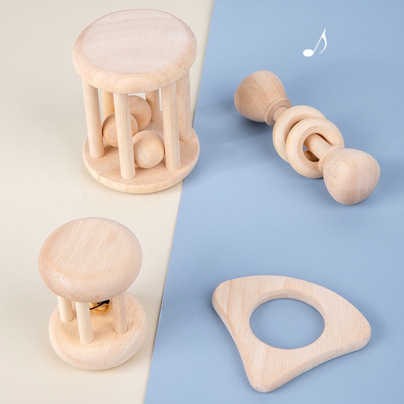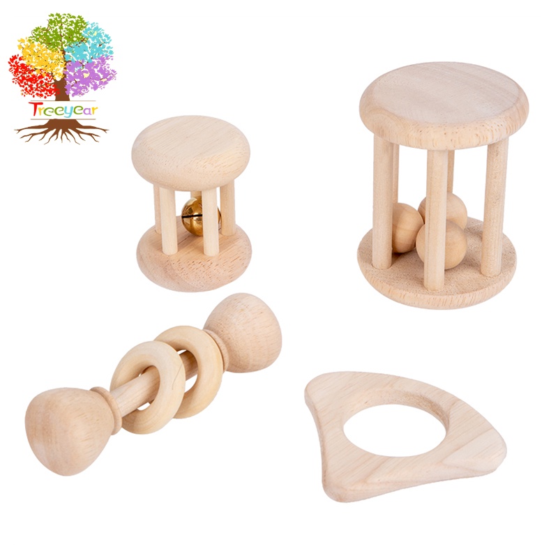 Treeyear Anel De Dentição Do Bebê Brinquedos Chocalhos Montessori De Madeira Geométrica Conjuntos De Brinquedo De