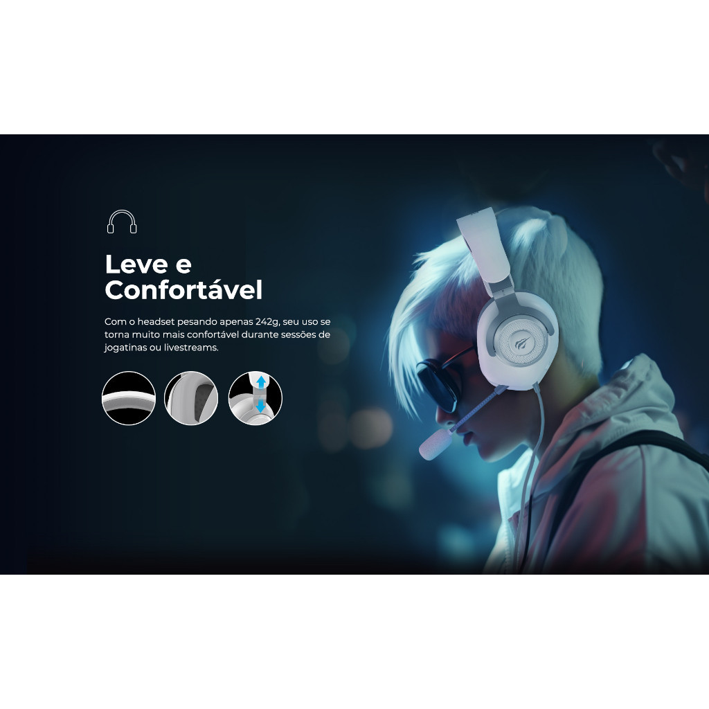 H2230d HAVIT Fone De Ouvido Headset Gamer com cabo P3 3.5mm, 7.1 Surround, para PS3/PS4/XBOX/PC - Preto e Branco