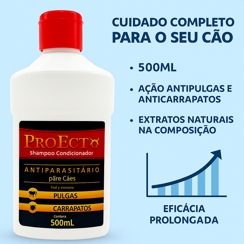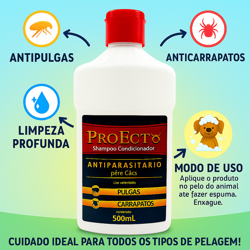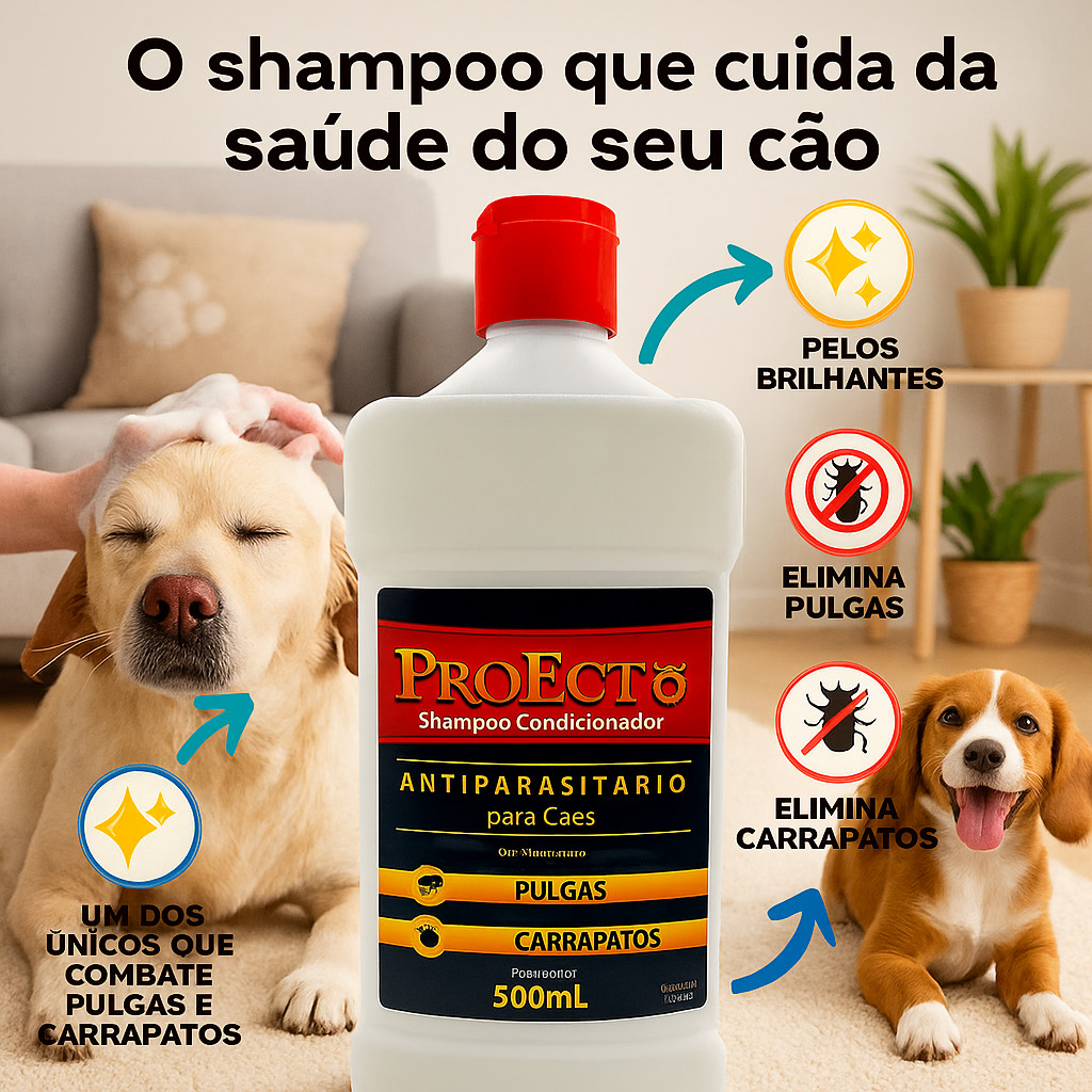 Shampoo Anti pulgas e Carrapatos Proecto para Cães 500ml Pet Elimina Parasita Cheiroso Lavanda