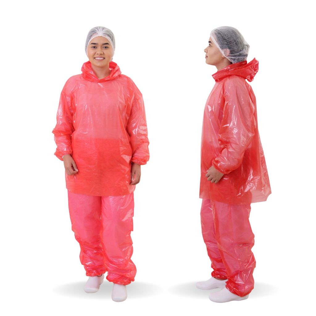 Conjunto Plástico Calça Jaqueta Impermeável Capuz Proteção Água Chuva Vestimenta Epi Vermelho