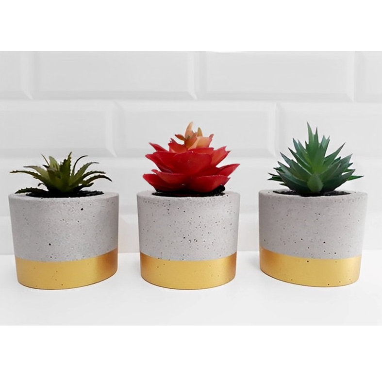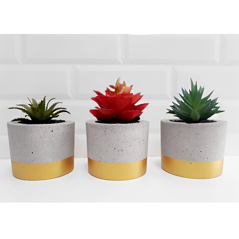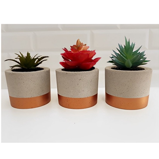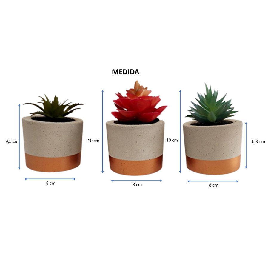 kit 3 Vasos Cachepot Vasinho + Suculenta Artificial - Decorar Mesa, Lavabo, Sala