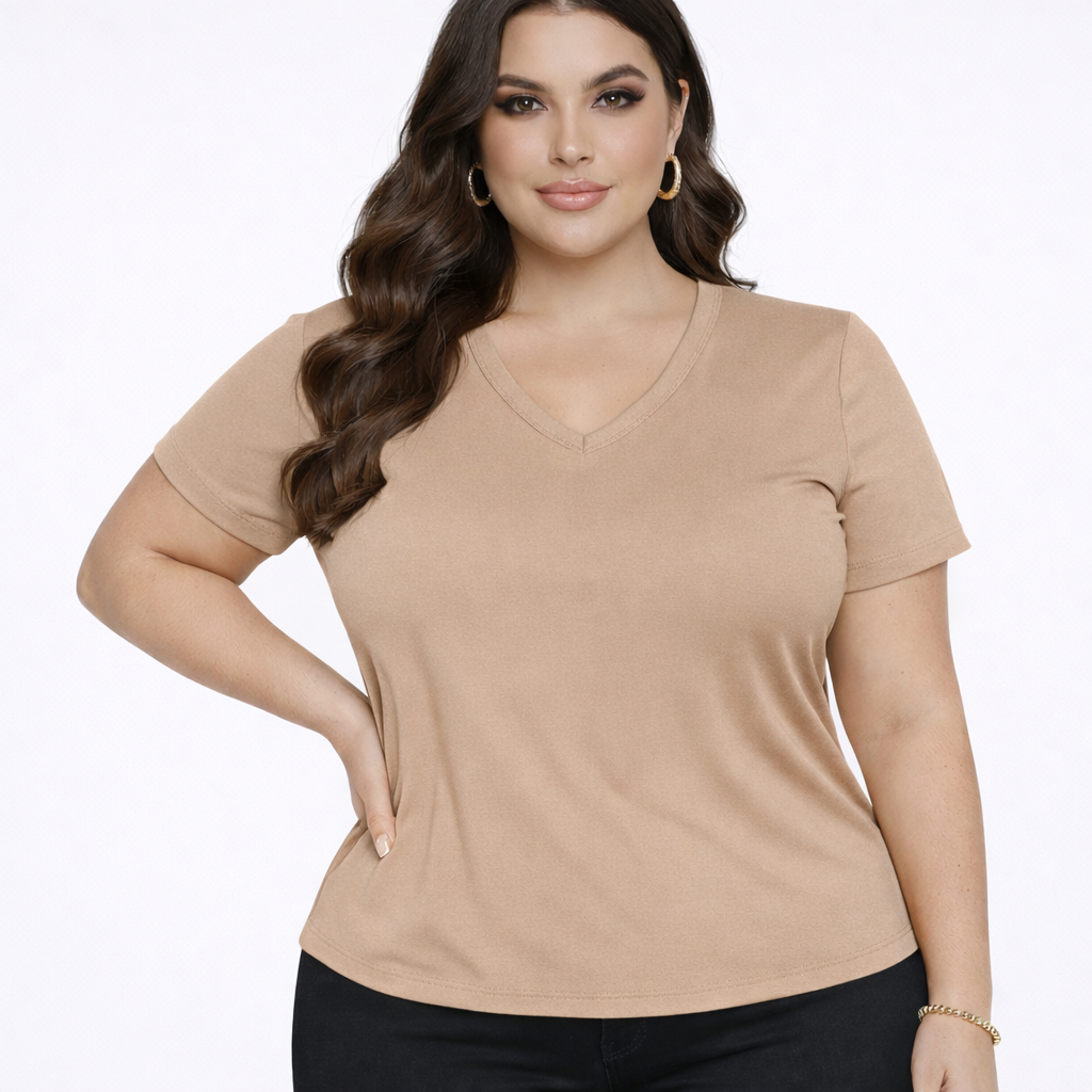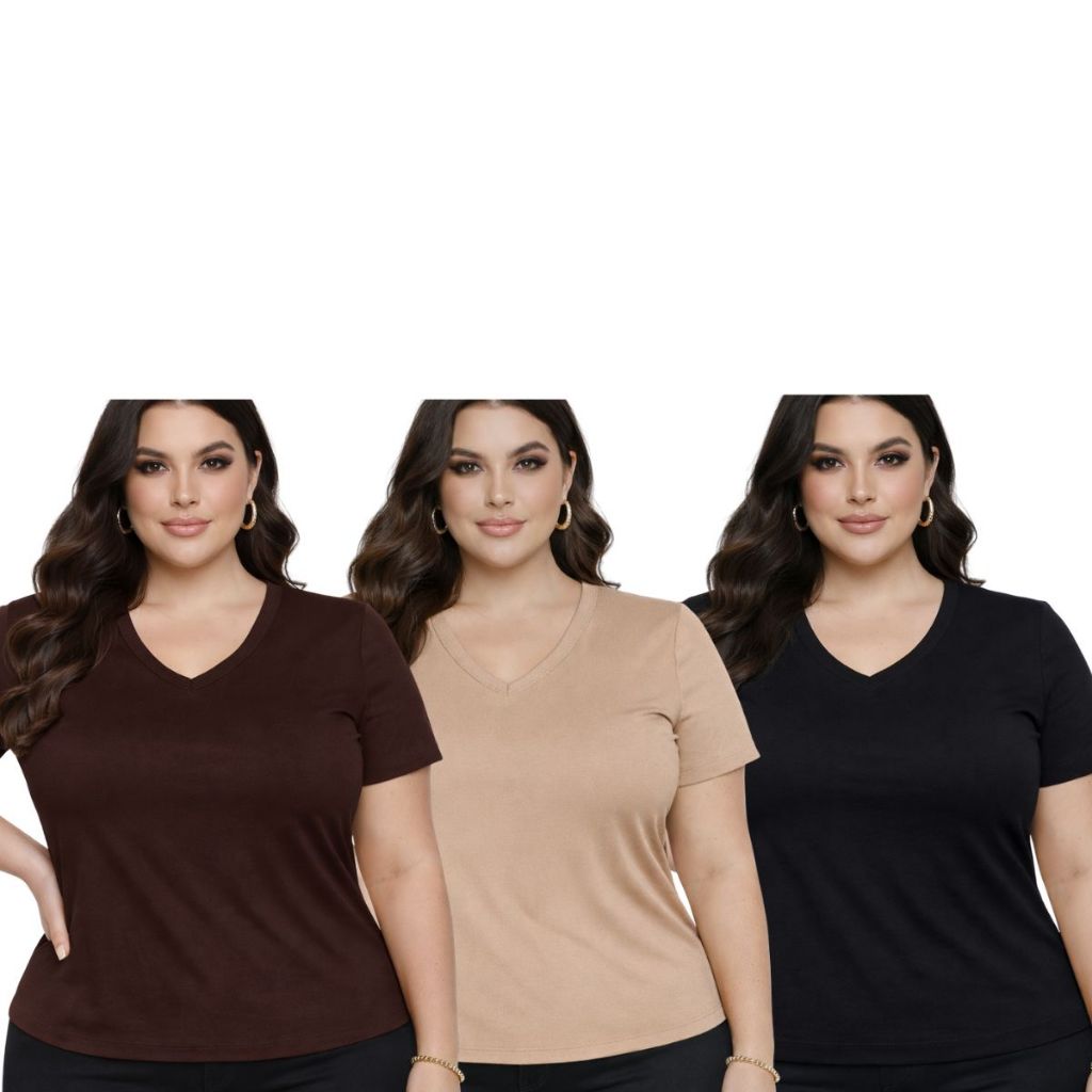 kit 3 blusa plus size feminina decote v manga cuta confortavél dia a dia tecido leve camisa Basica