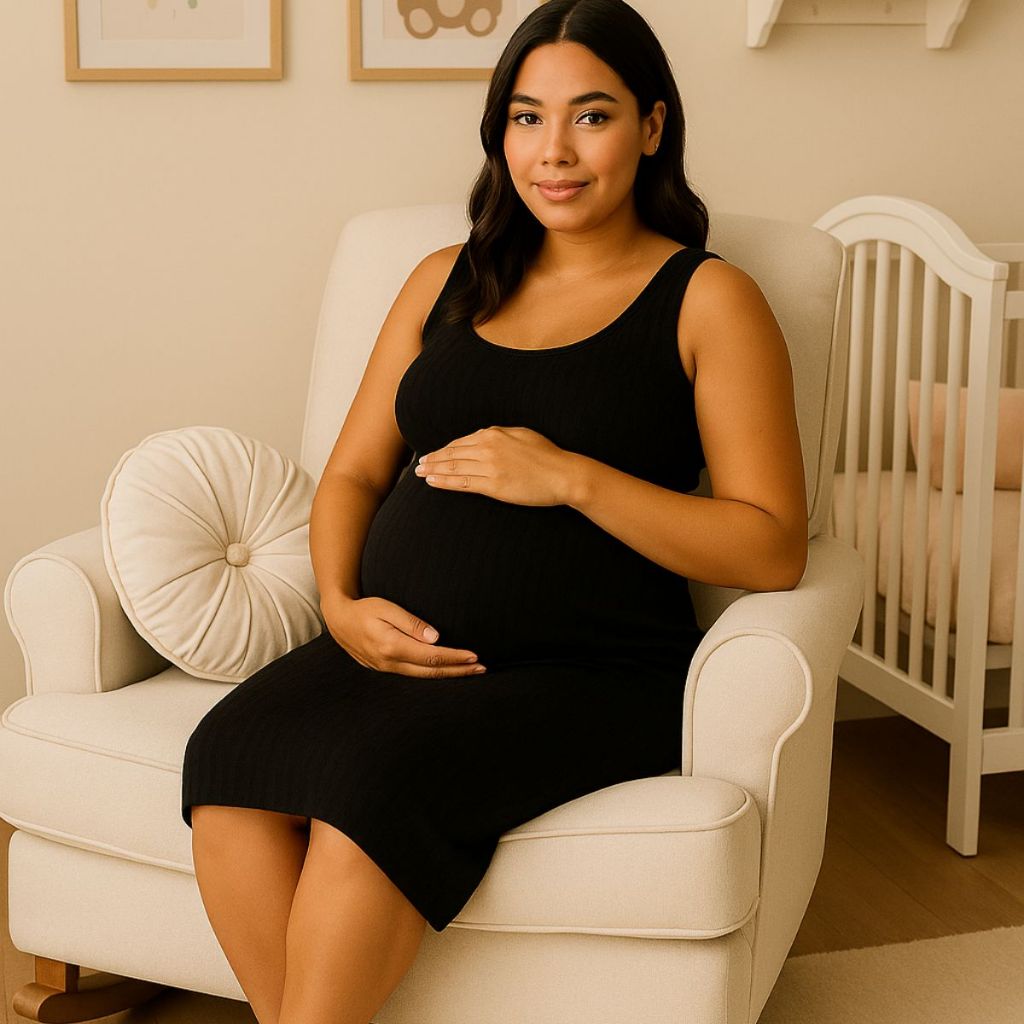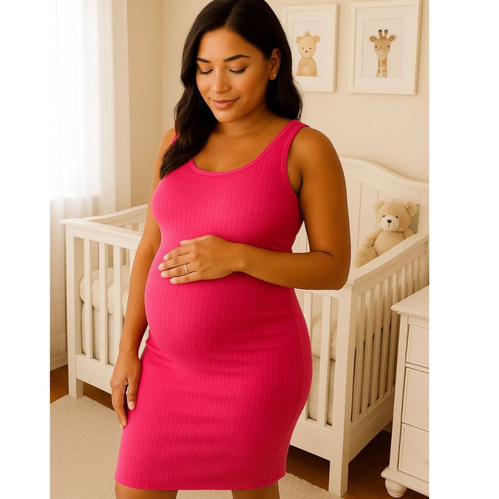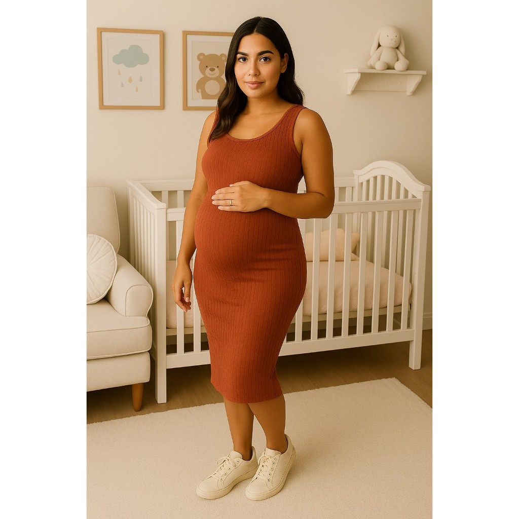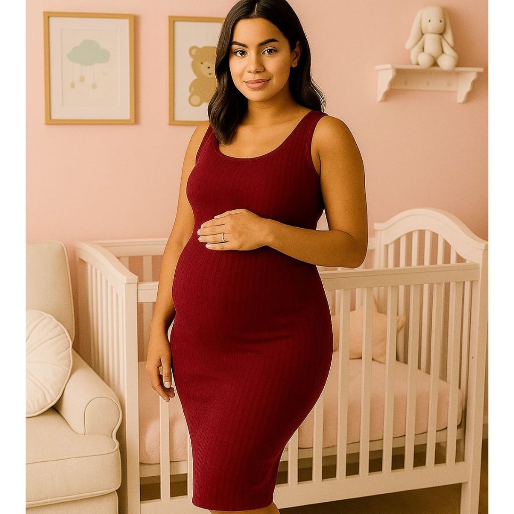 Vestido feminino regata Para gestante Midi canelado ribana.