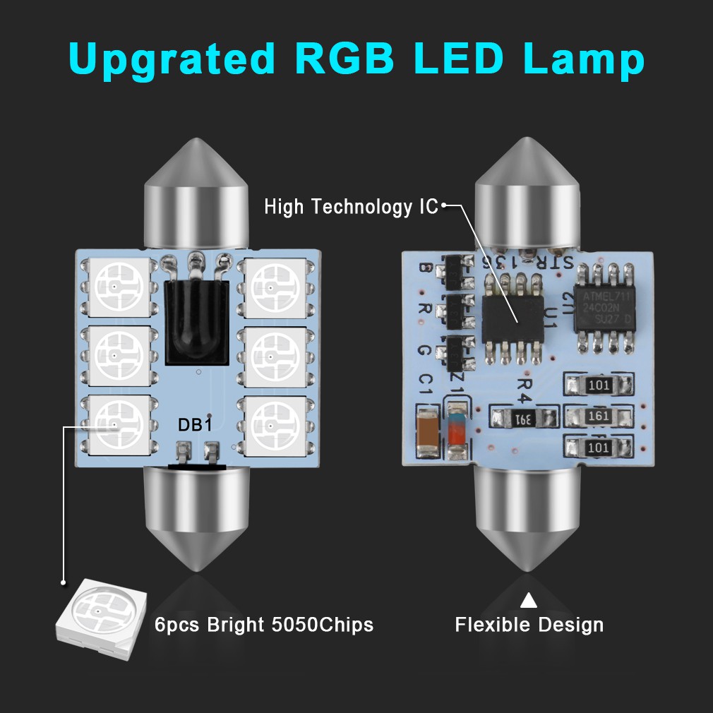 Claro Led Rgb Festoon 31mm 36mm 39mm 42mm Luzes Interiores Do Carro Com Controle Remoto Multicolor Claro Lâmpada De Leitura Auto 12v