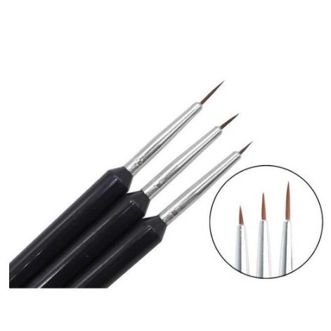 Kit 3 Pinceis Ponta Fina Decoração Unhas - Alongamento Esmalte Nail Art Acrigel Fibra