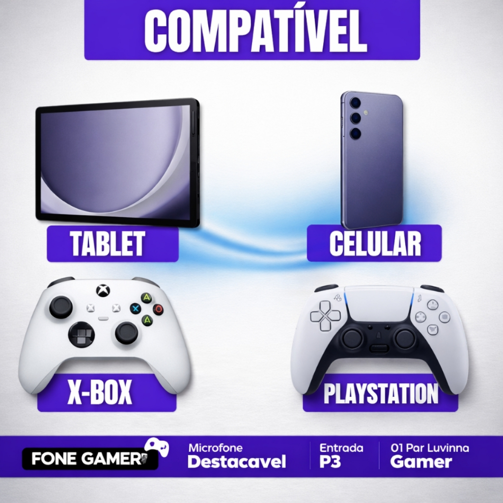 Fone Gamer com Microfone P3 para Celular PC PS4 Xbox Free Fire PUBG