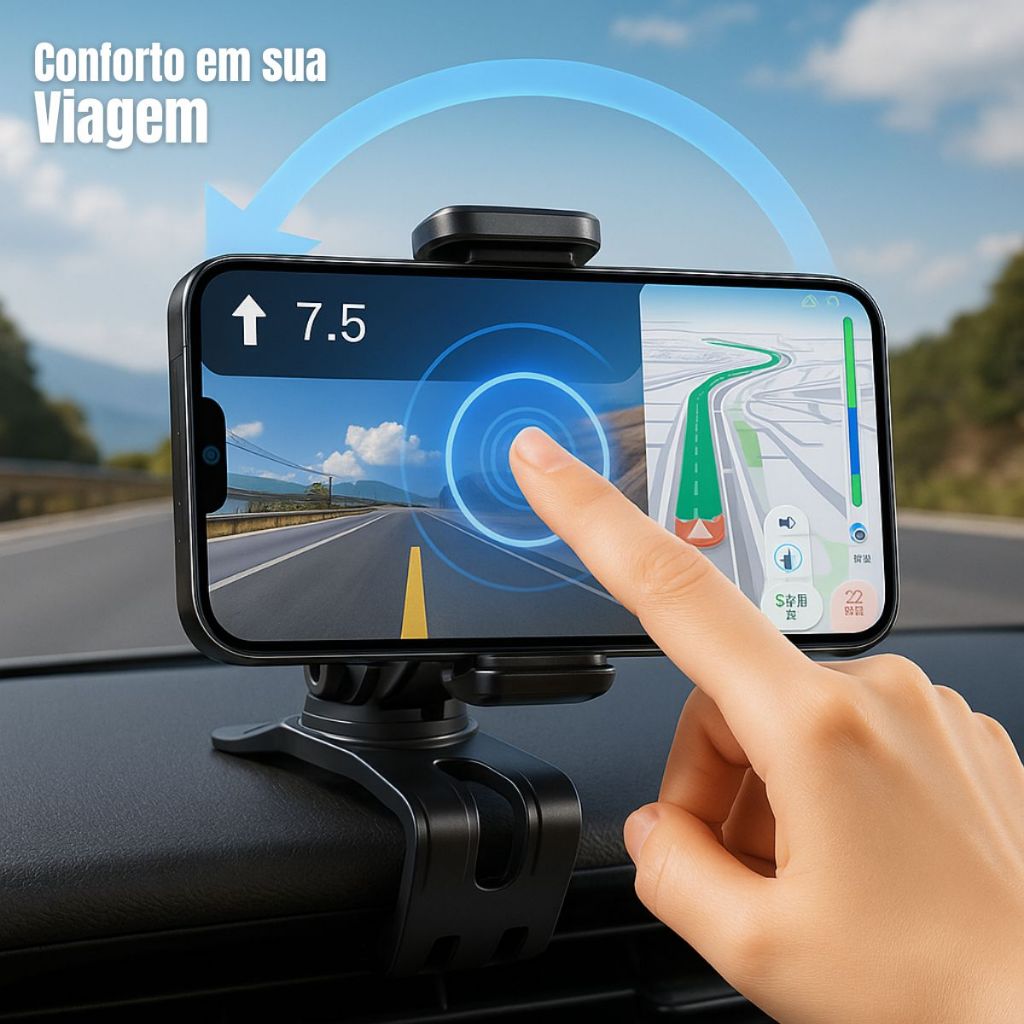 Suporte de Celular Carro Painel Ajustável Rotação 360° GPS Smartphone Direção Segura
