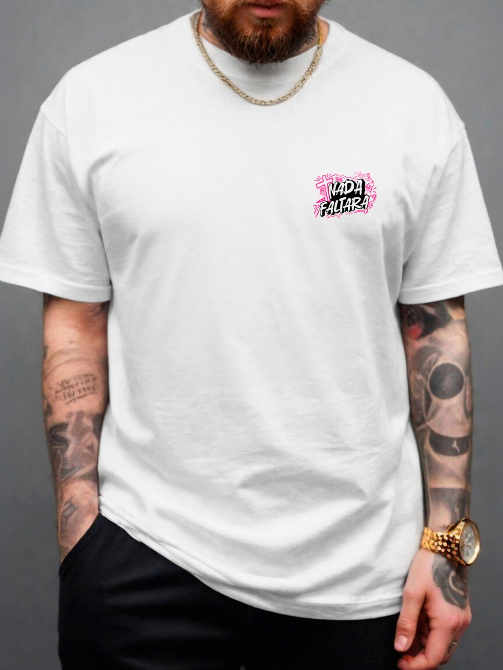 Camiseta Masculina DIVERSE ESTILOS Nada Me Faltara Camisa T-Shirt Manfinity 100% Algodão Street Wear