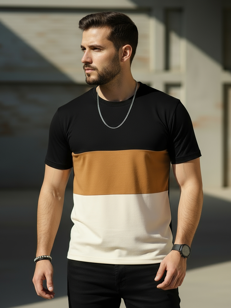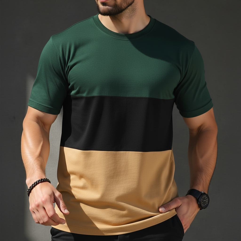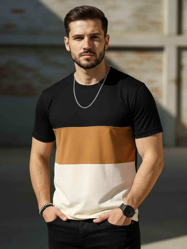 Camiseta Masculina Tricolor 100% Algodão Street Wear