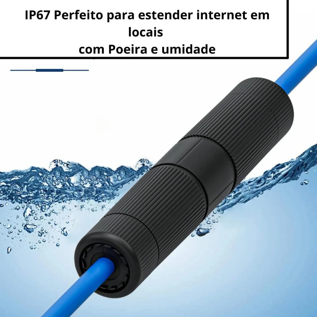 Emenda RJ45 Fêmea para Cabo de Internet UTP, Conector à Prova D'água IP67, Preto