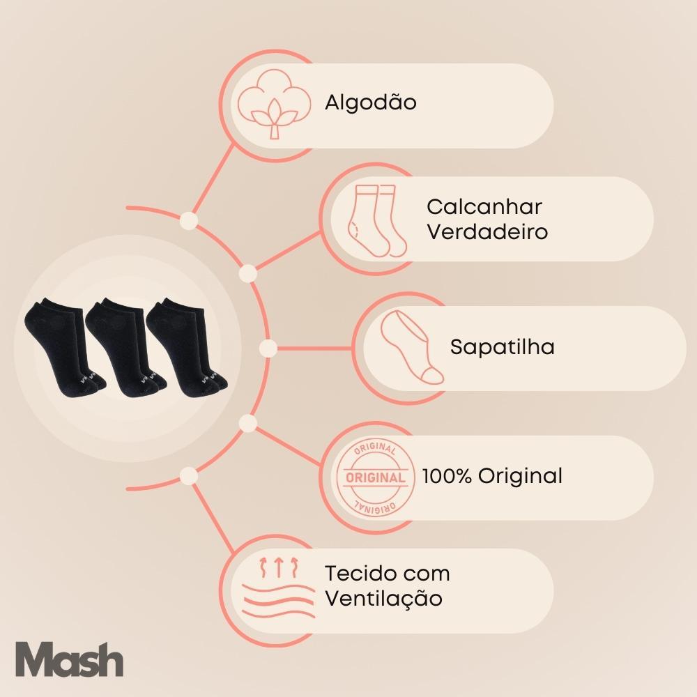 Kit Com 6 Pares Meias Soquete Mash Feminina E Masculina Cores Basicas