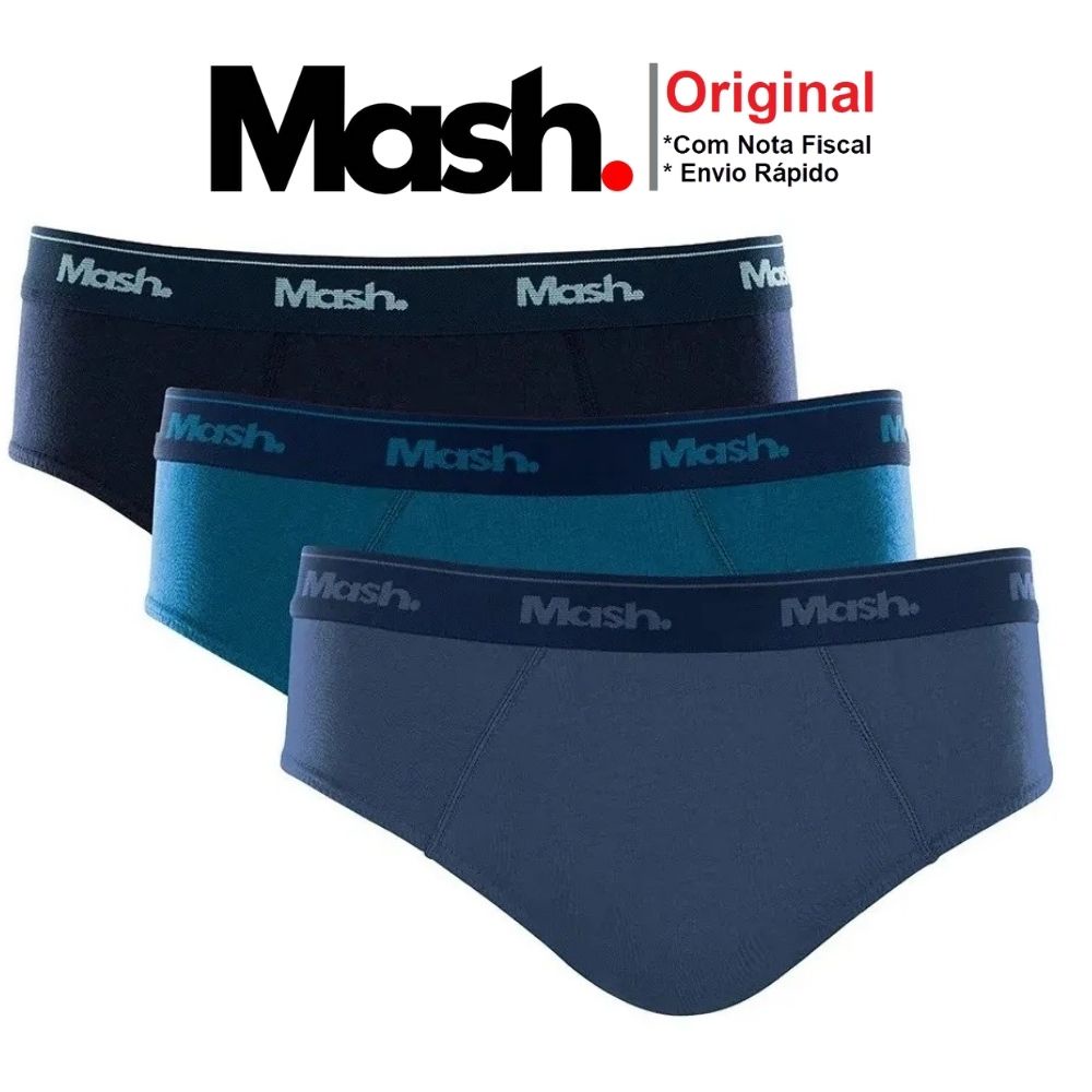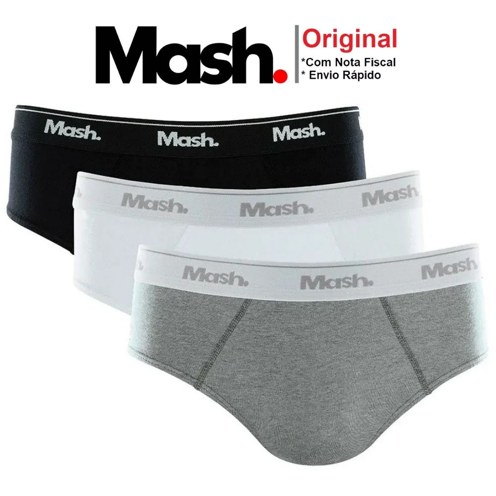Kit Com 3 Cuecas Plus Size Tamanho Grande 54 56 58 60 Mash Slip Tradicional Em Algodao