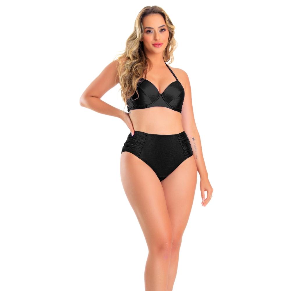 Calcinha de Biquini Efeito Zero Barriga Fio Dental Modela e Reduz Banho de Mar Plus Size Drapeado