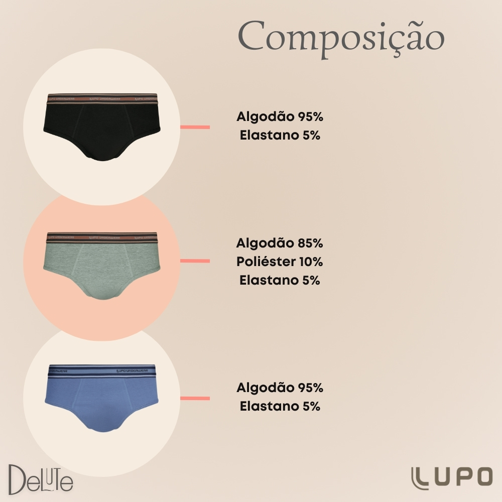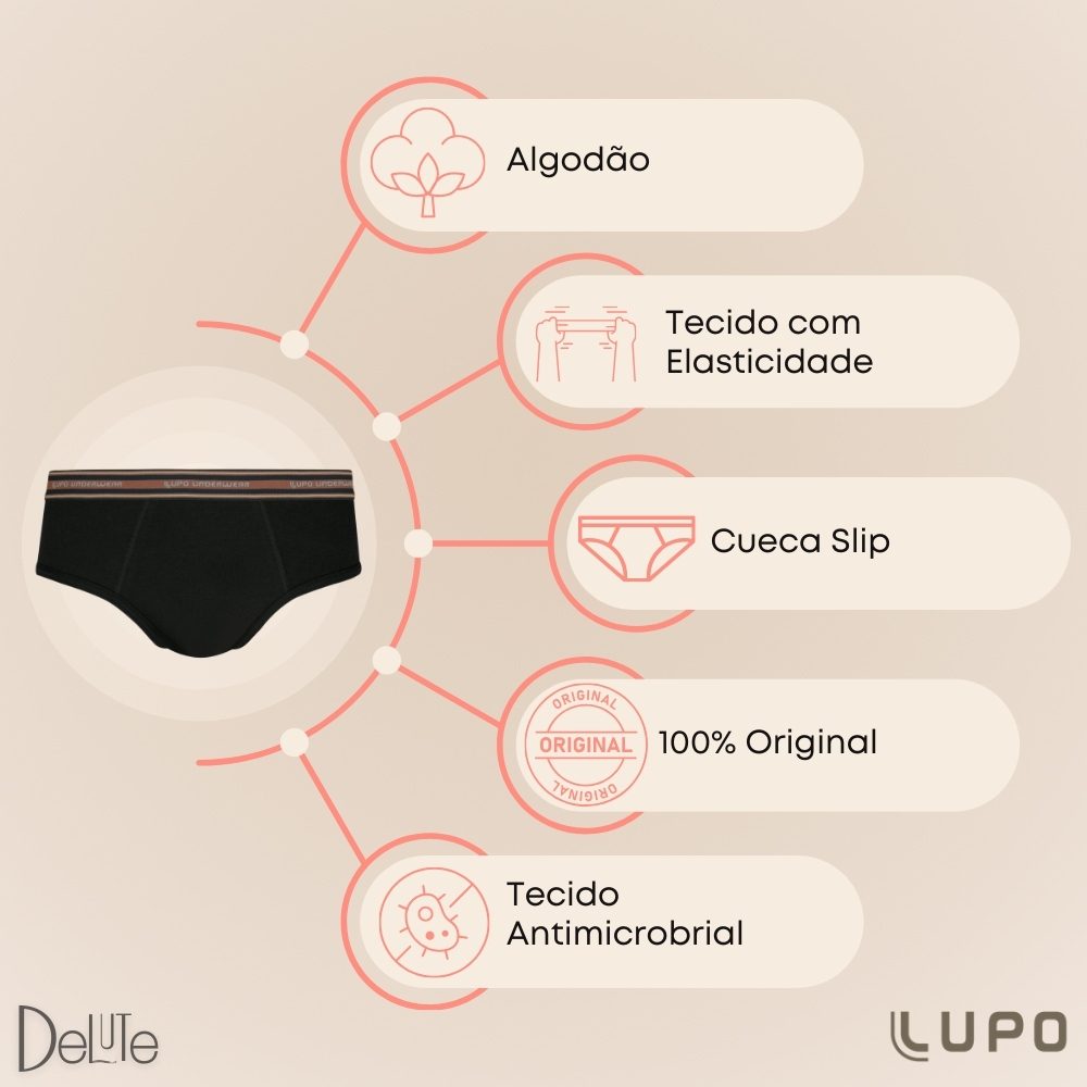 Kit 2 Cuecas Lupo Slip Algodao Modelo Tradicional Com Cos Elastico Modelo Anatomico Tam. P ao GG
