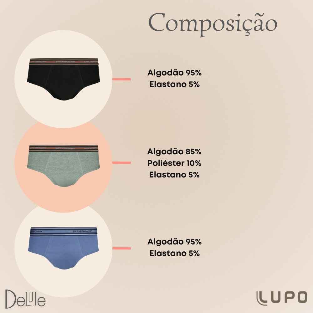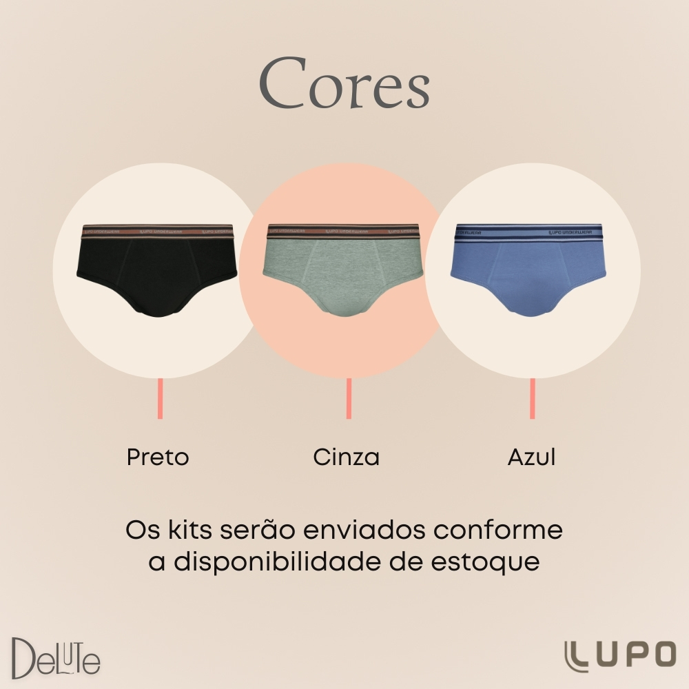 Kit 4 Cuecas Lupo Slip Algodao Modelo Tradicional Com Cos Elastico Modelo Anatomico Tam. P ao GG