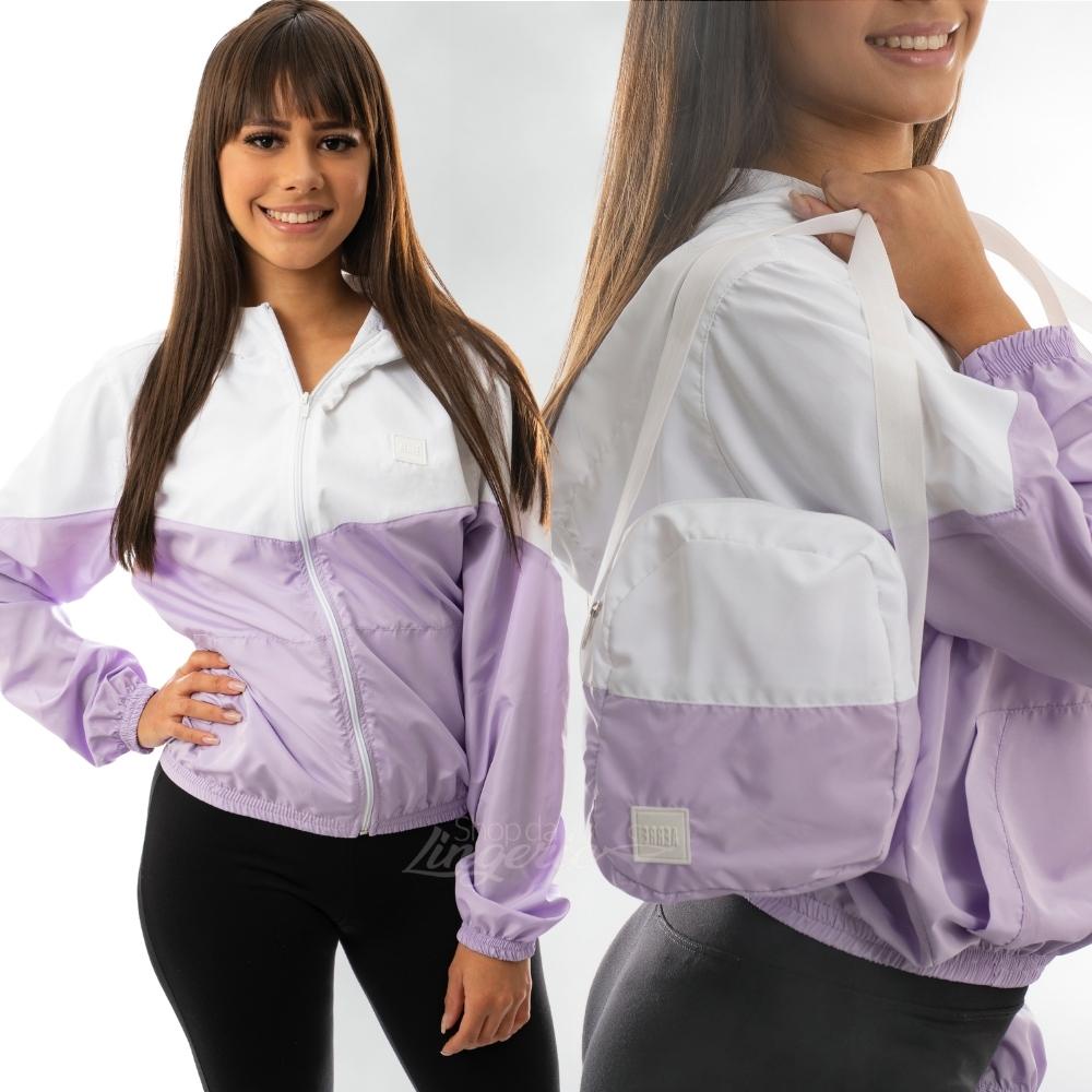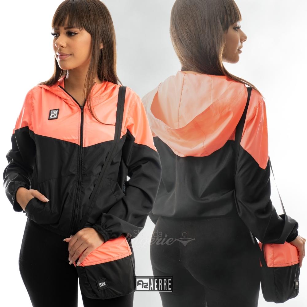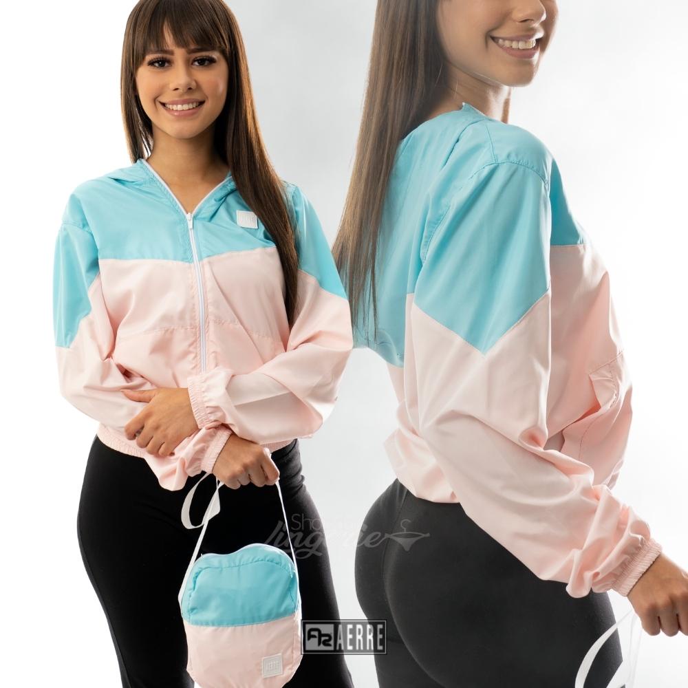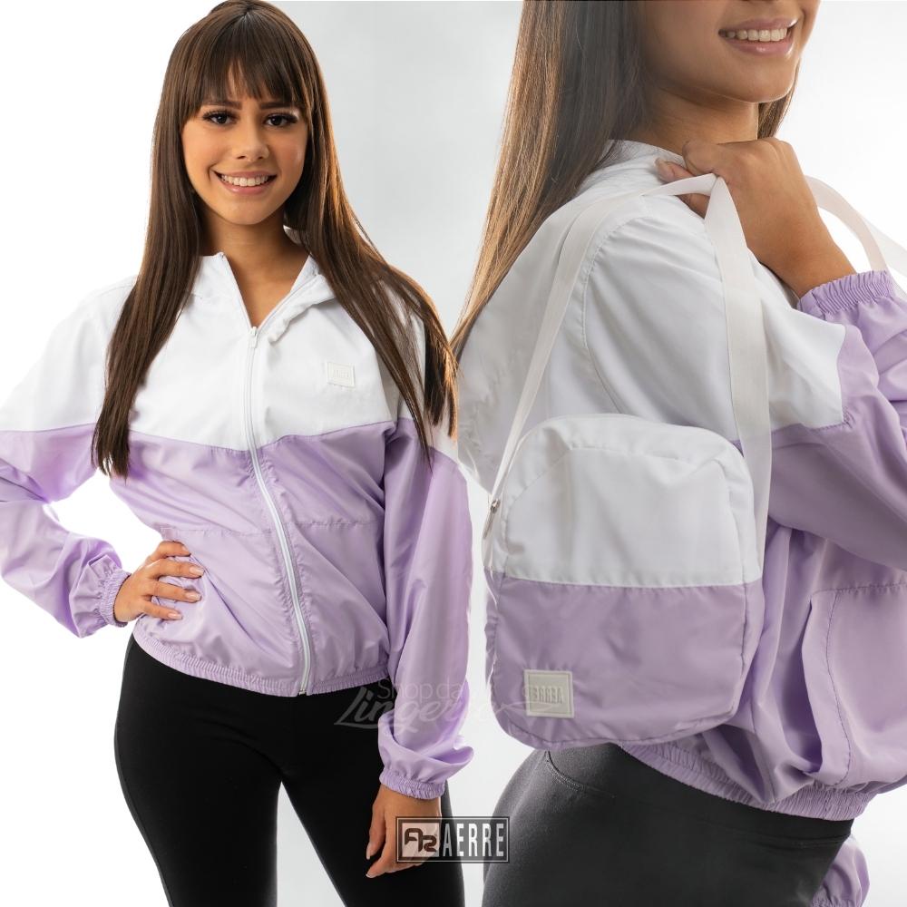 Jaqueta Corta Vento Feminino com Shoulder Bag Aerre Duas Cores Tecido WR Resistente a Agua e Ar