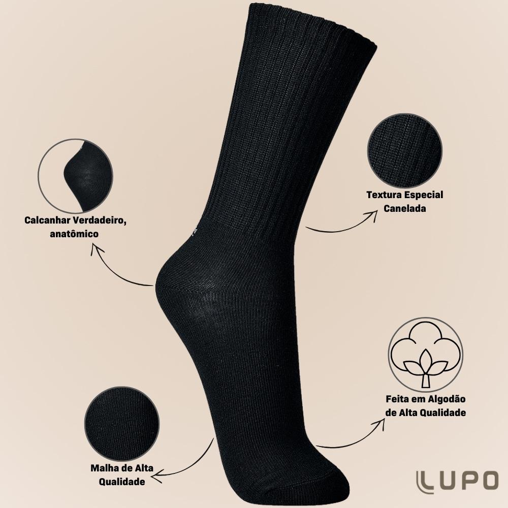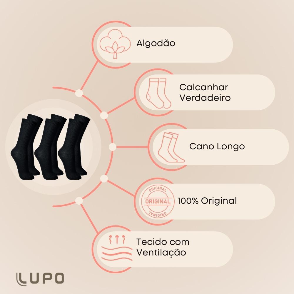 Pacote Com 3 Pares de Meias Lupo Cano Longo Masculina Sport em Algodao Cotton Confortavel