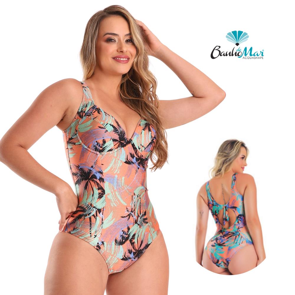Maio Banho de Mar Alca Fina Com Bojo Efeito Zero Barriga Modela e Reduz Moda Praia Estampado