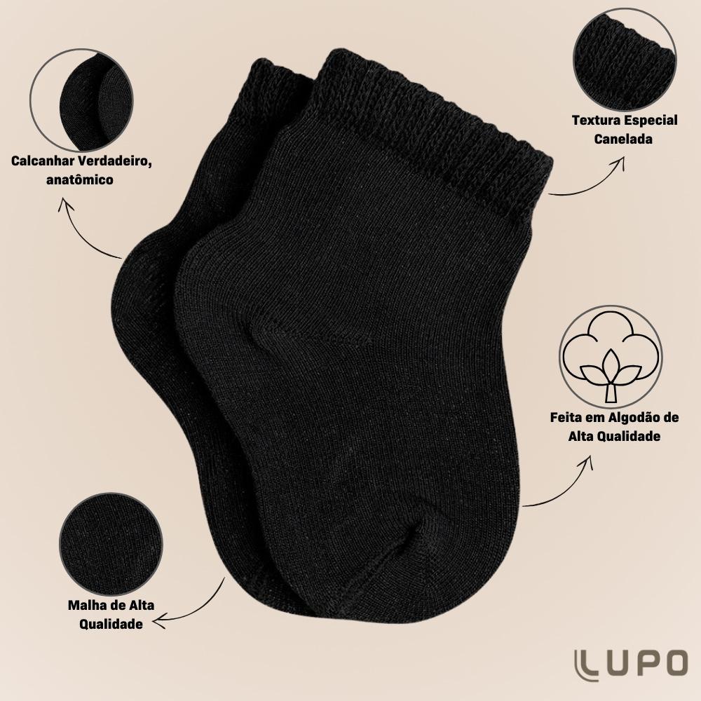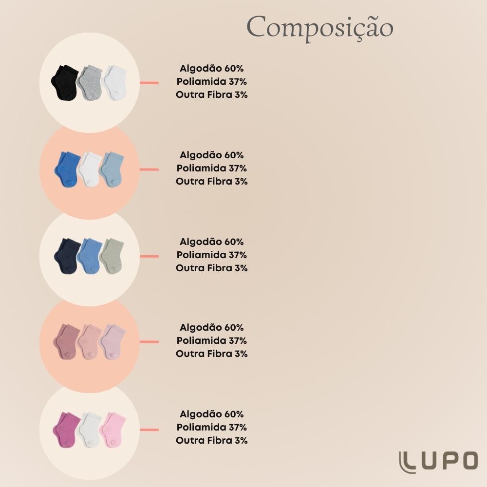 Pacote com 3 Pares de Meias Cano Curto Lupo Bebe Crianca Infantil em Algodao sem Estampa Basica