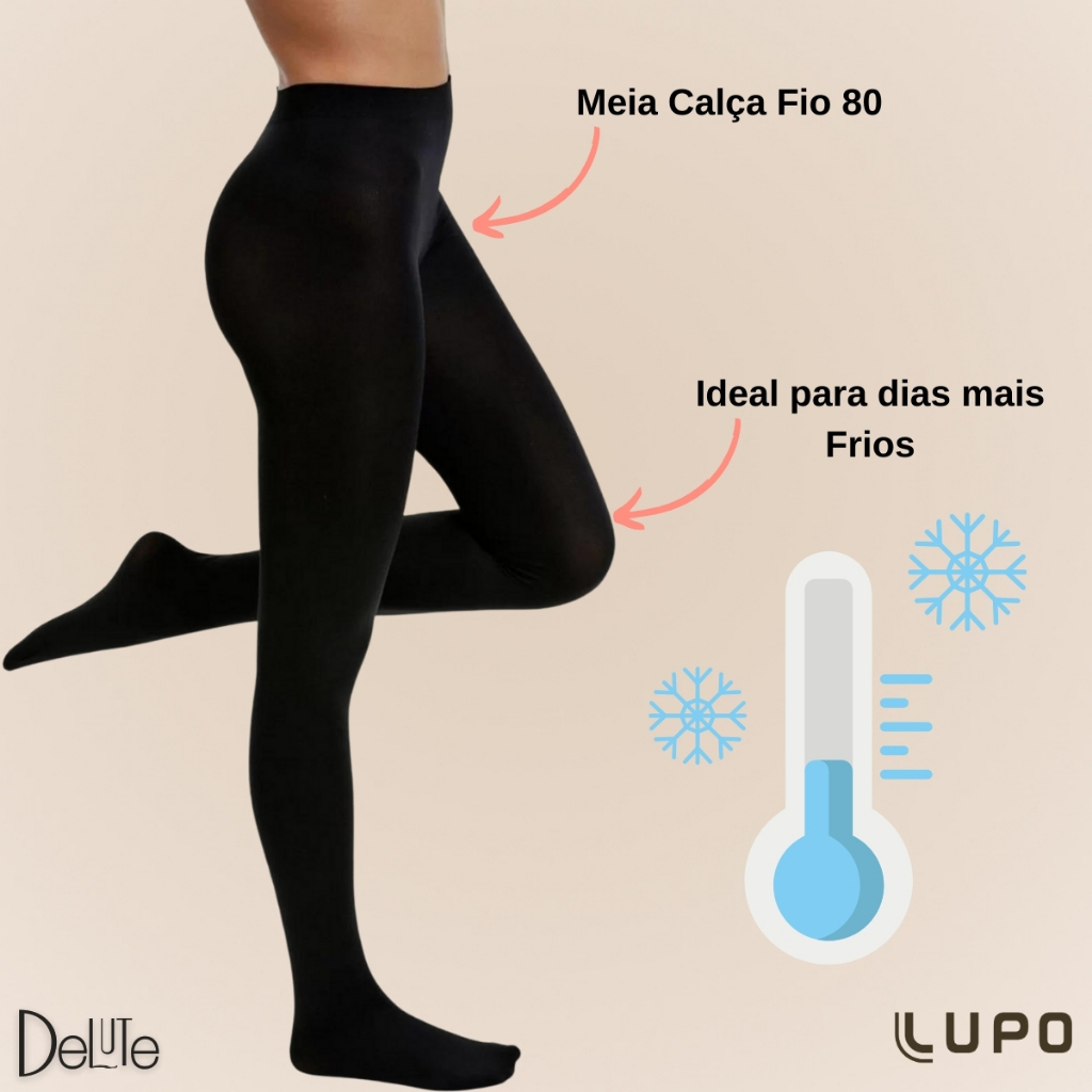 Kit com 2 Meias Calca Lupo Loba Classic Reforcadas em Poliamida para o Inverno ref: 5858 Cor Preta