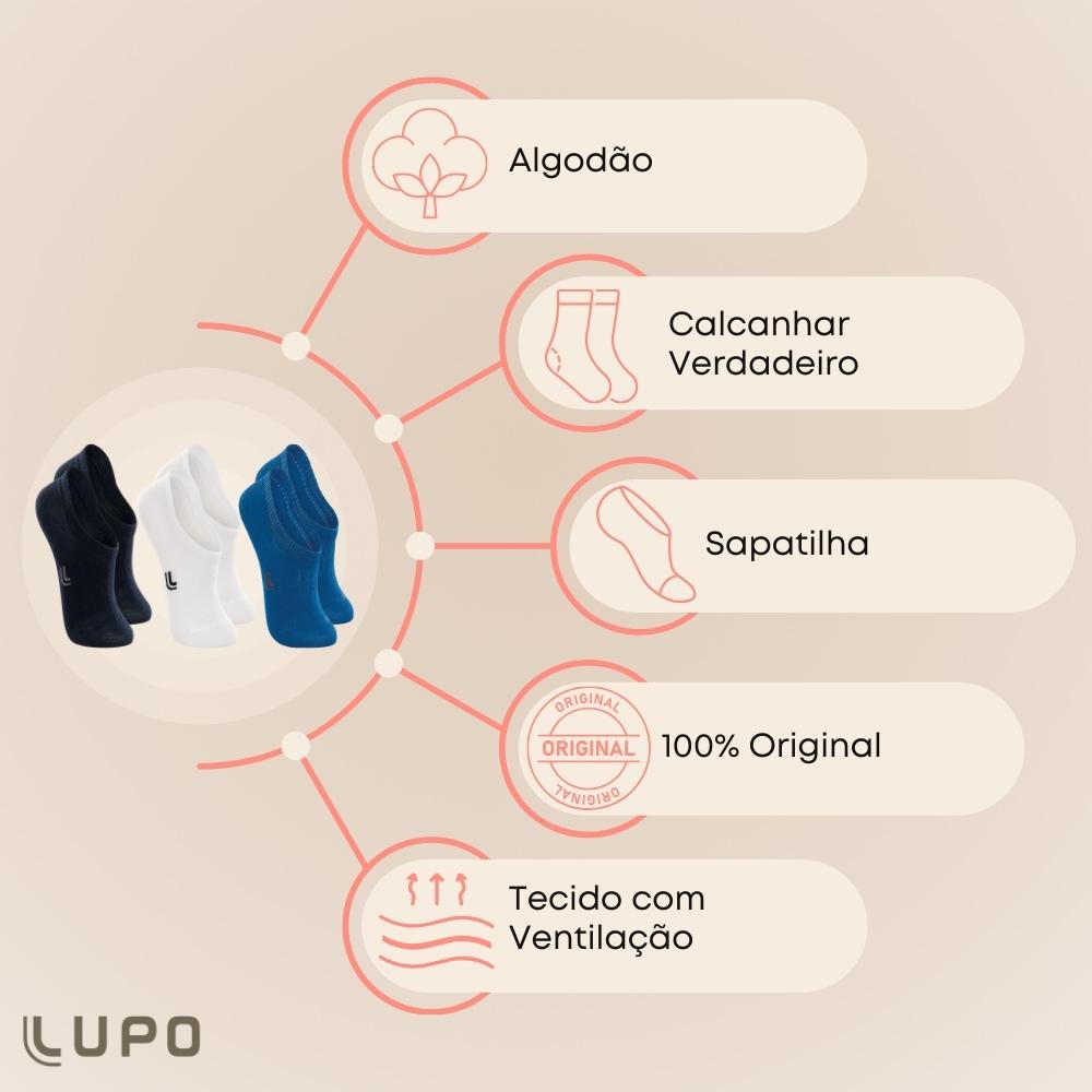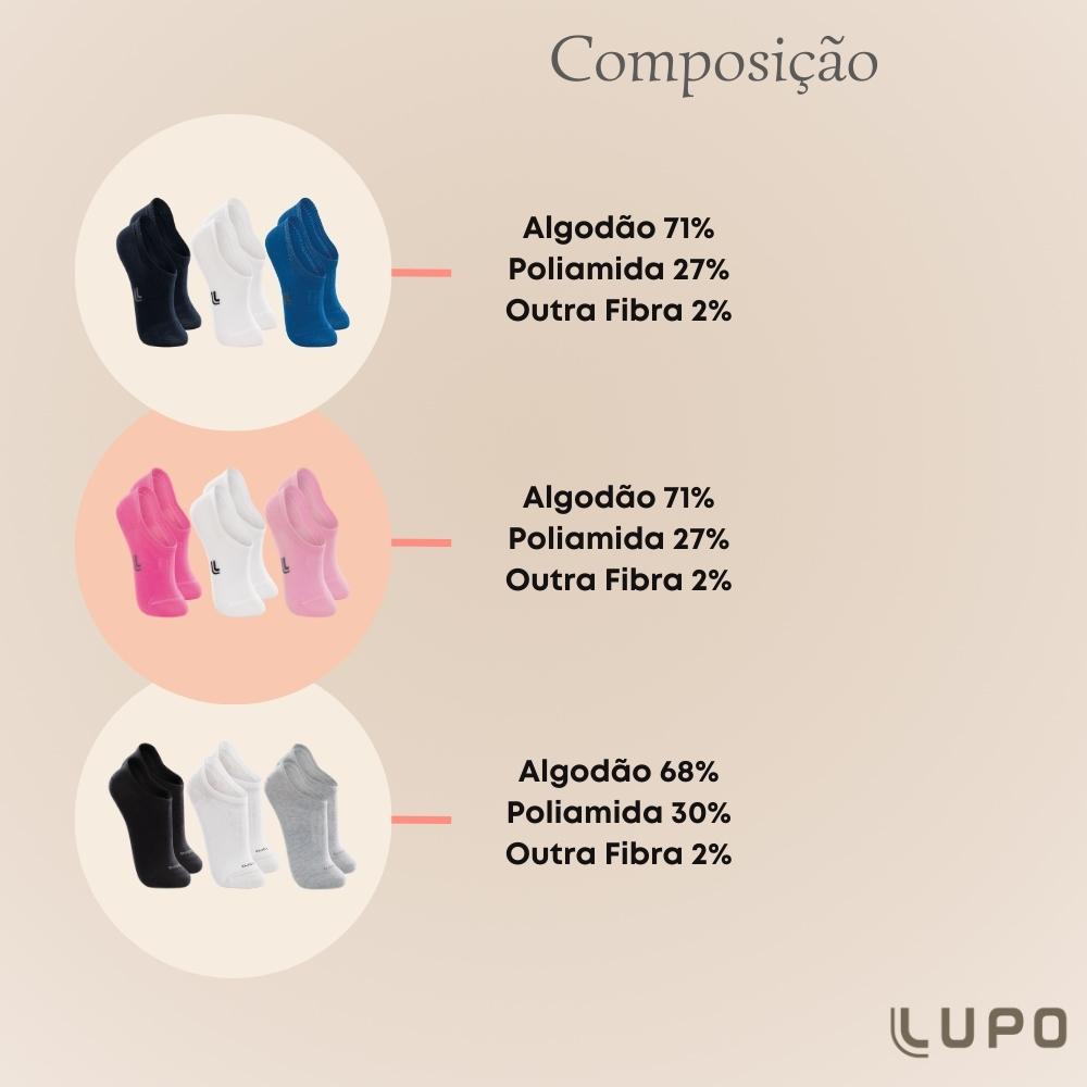 Pacote com 3 Pares de Meias Invisivel Lupo Baby Infantil em Algodao Sport Confortavel Lisa